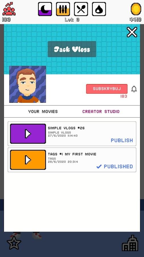 Pixel Tube Tycoon – create your character, choose its looks and clothing, also create a channel Pixel Tube and gradually become popular. Along with the hero videos, publish them and edit. Develop your career and earn on it. Satisfy the needs and go to town, explore different locations. People will recognize you on the street, enjoy the glory and focus on their needs, creating the content. Do not forget to regularly go online and make updates, otherwise the audience will quickly forget about you.