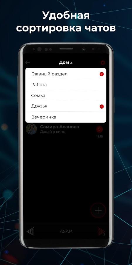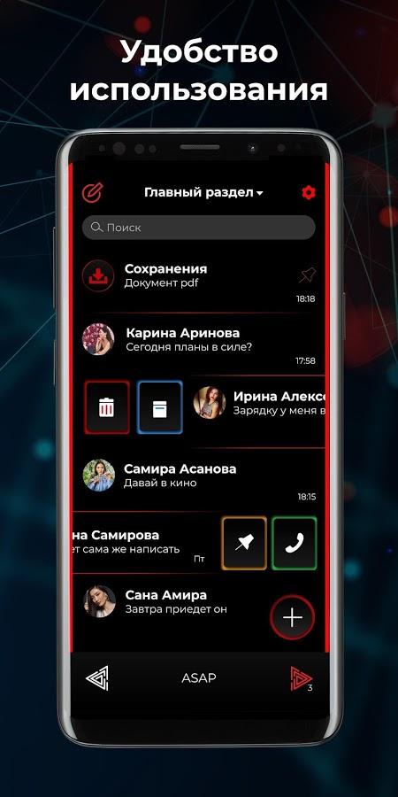 in order to make the device work more progressively and smoothly, you need to combine some own and third-party applications using the platform SFERA project. Collection of 20 various updated services vzaimodeistvuet with the best third party programs. Check the bound phone number and email account are required. Identification occurs by a single ID. Communicative functions interacting with each other by different sub-applications provides built-in secure messenger ASAP with the ability to sort chats and contacts, add your own categories and sections, a display of the hidden correspondences.