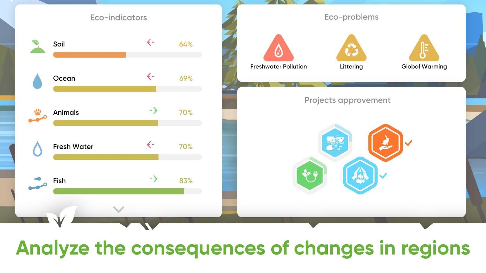 Save the Planet: Green Educational game technology in the development of mankind has reached the last stage, however, this has led to resource depletion and the gradual desolation of the land. The climate has become unpredictable and your task will be to create a Fund to save the planet, flora and fauna. Show your intellectual ability, and think about what steps you can implement to save the planet. Conduct meetings and rallies, insisting on the use of filters and other devices that protects the natural sources of debris. Start a whole company and conduct activities, insisting on the protection of the environment.