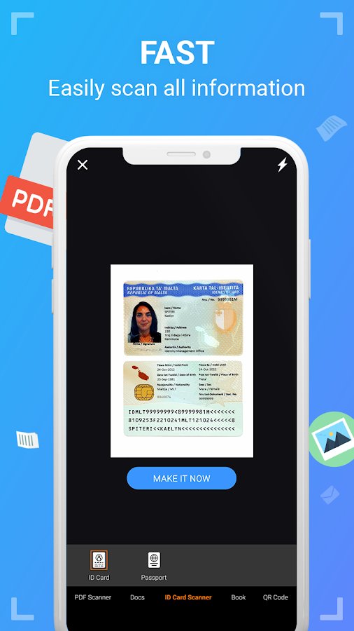 ScanIt enables you to scan any document, save it in PDF format, send by email, Fax or instant messengers, and pereimenovat. Using the application, you will be able to recognize not only a plain text document, but also of the payment receipt, passport, QR codes, ID, business cards and more. Quickly and easily convert photos to PDF file format , assign it a name and save in the desired folder by selecting the desired recognition mode (color, gray, black and white). Focusing during scanning is adjusted automatically. If necessary, you can change the contrast colors, optimize the processing speed, do a quick search using the device s camera.