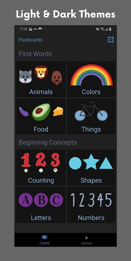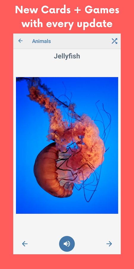 To the child to know the world, became acquainted with the names of different objects and phenomena, ask him to play in a fun and educational game with cards Flashcard Baby, which not only broaden his horizons, but will also help to develop memory, attention, logic and reasoning. Choose cards from hundreds of themed images that stir deeper interest and consolidate knowledge, try the quiz and complete interactive tasks. The application does not hype and you don t have to worry about accidental wrong button child unnecessary buttons. The design is developed with consideration of age and is a simple but at the same time increases the interest.