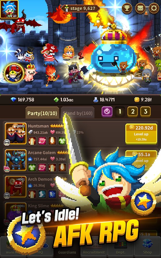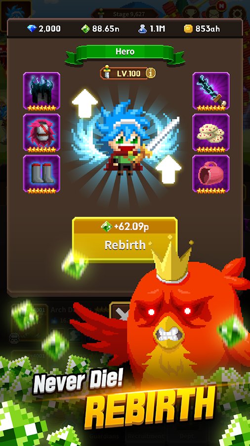 Idle Guardians: Never Die – a game in which the action continues even if you exit. Participate in fights and battles in a retro style, take control of the brave and fearless hero and go to battle. Improve your skills and get rewards, if you kill, accumulate enough energy to be reborn and continue the game. Enjoy the process with friends and find out all the weaknesses of your enemy, you become faster and stronger and challenge the strongest opponents. Unlock more than 160 characters and new levels.