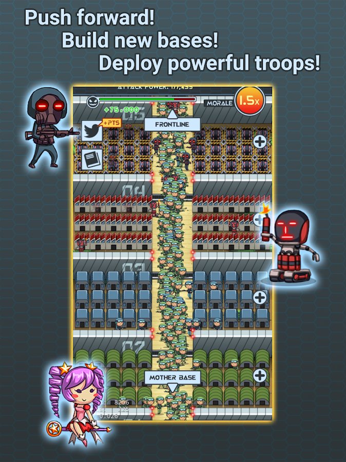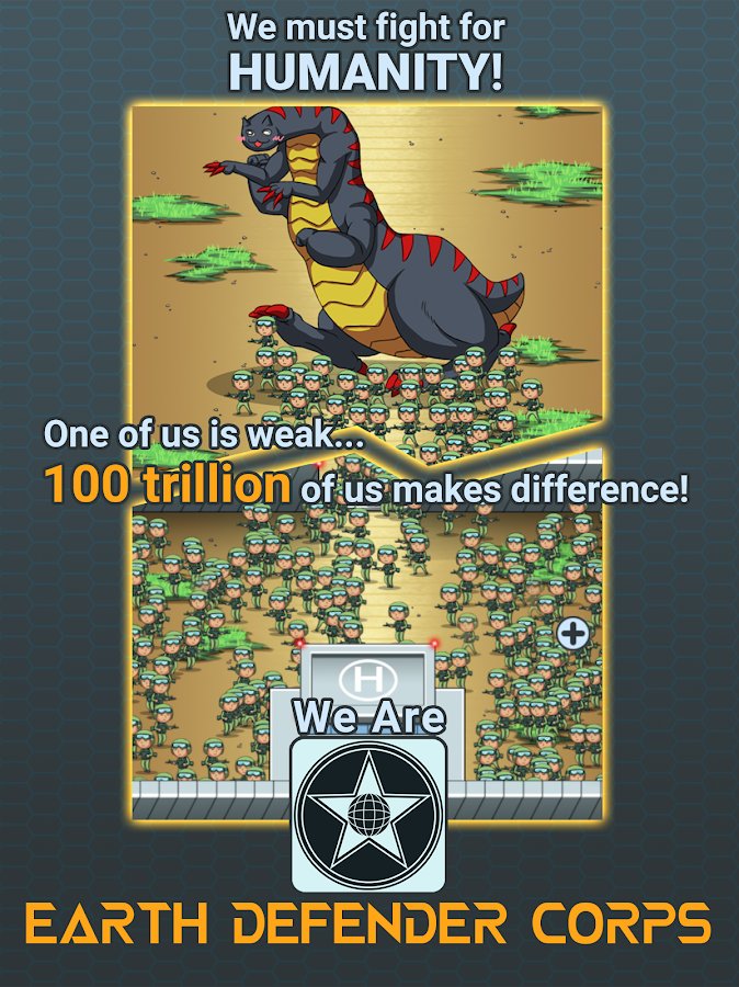 100T Earth Defender Corps – in this epic game you have to save the Earth from imminent death. Develop tactics and weapons, and confront the enemy, who decided to get coveted territory. Some form of life was quickly and uncontrollably mutate, attacks on humans have increased and the hope for the salvation of all kind just for you. Organize an army and send soldiers to hot spots, loosen the enemy and apply a crushing blow. Monsters grow and spread quickly, but even they have weaknesses.
