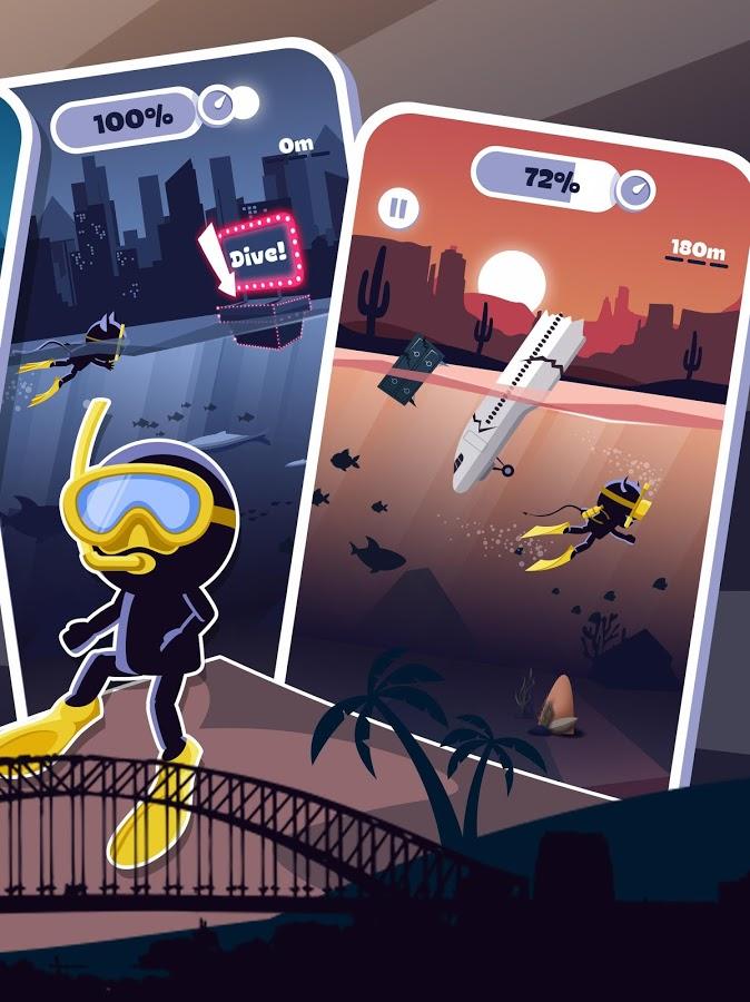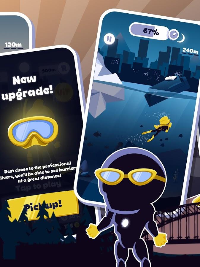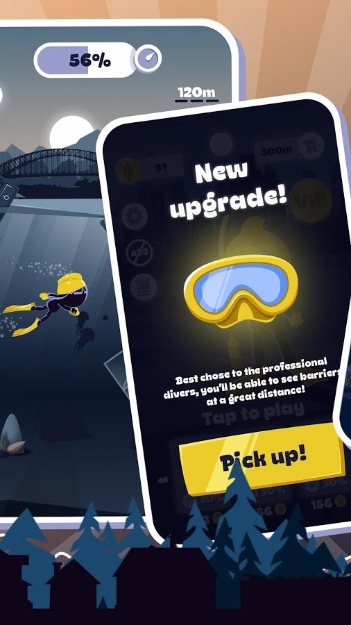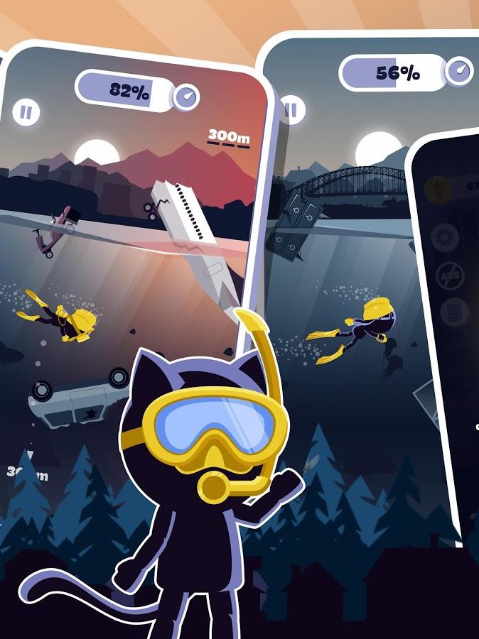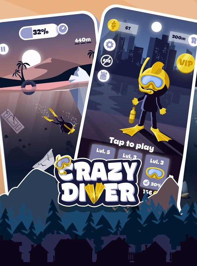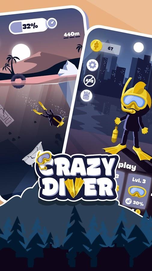 Crazy Diver – fascinating and a bit amusing game in which you will control a cat in a scuba suit. Dodge the obstacles and go as low as possible. To quickly get familiar with the gameplay and time to make decisions. In order to dive as low as possible, press your finger on the screen, and then release to return to the surface. Find the balance and hang on the edge, collect jewels and treasure, complete missions and quests, discover the world of diving and underwater adventures.