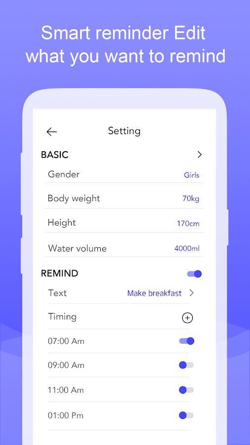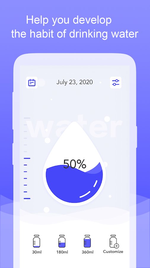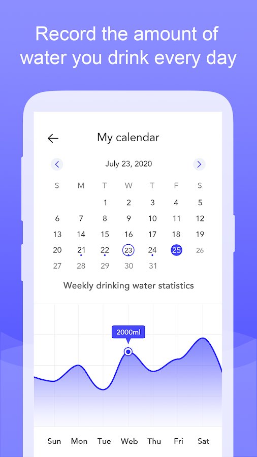 - Automatically record the amount of alcohol consumed per day of drinking water and tracking of results;