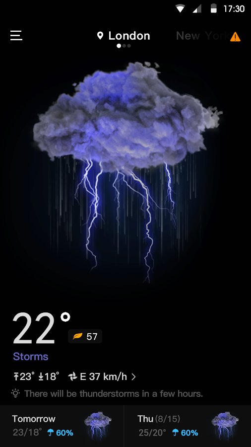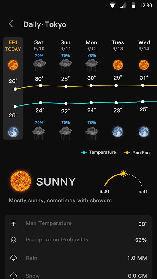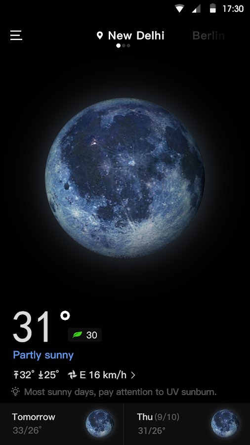 - Precipitation, wind, sunrise and sunset, moon phase, UV-index;