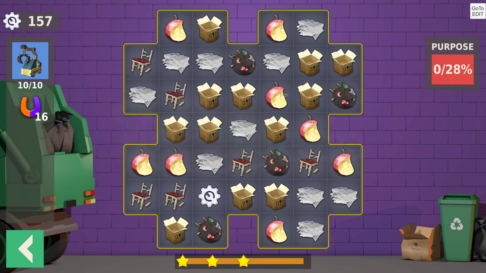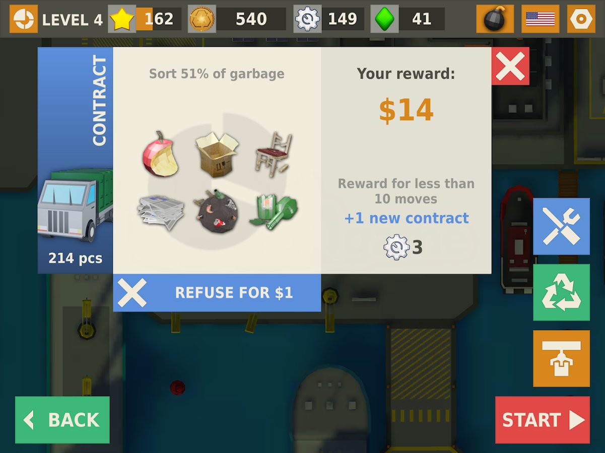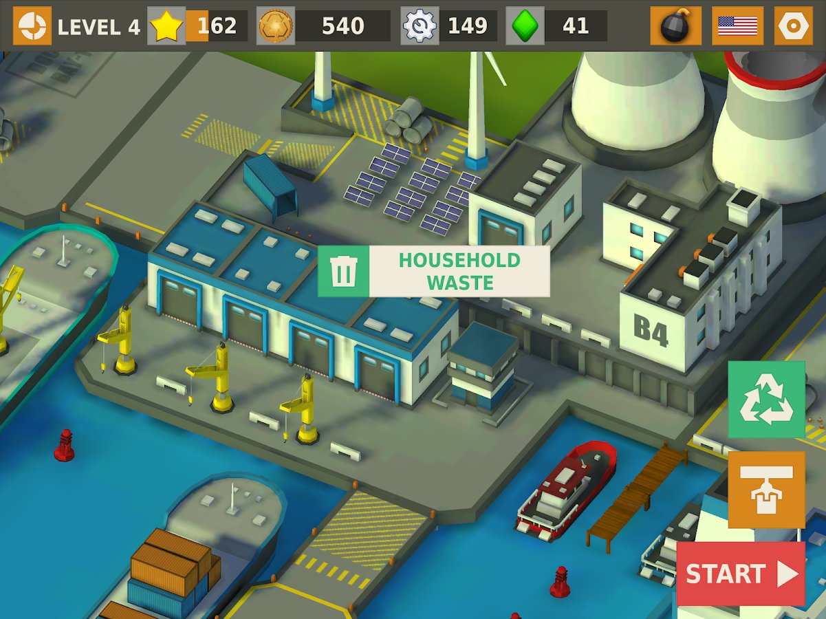 Trash game - a game three in a row puzzle game – modern game in the genre of three in a row, but here you have also to clean the city of garbage. The environment suffers greatly, the streets scattered dirt and debris and help its inhabitants to collect it all and send to processing. You will immediately feel how the climate will change and part the dark clouds, solve puzzles, and sometimes very difficult puzzles, navigate to locations and learn new professions, including the engineering scavenger hunt, and many others. Get rewarded with diamonds and money and improve your abilities.