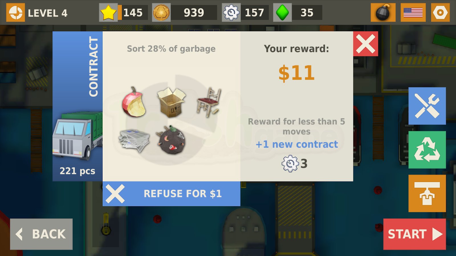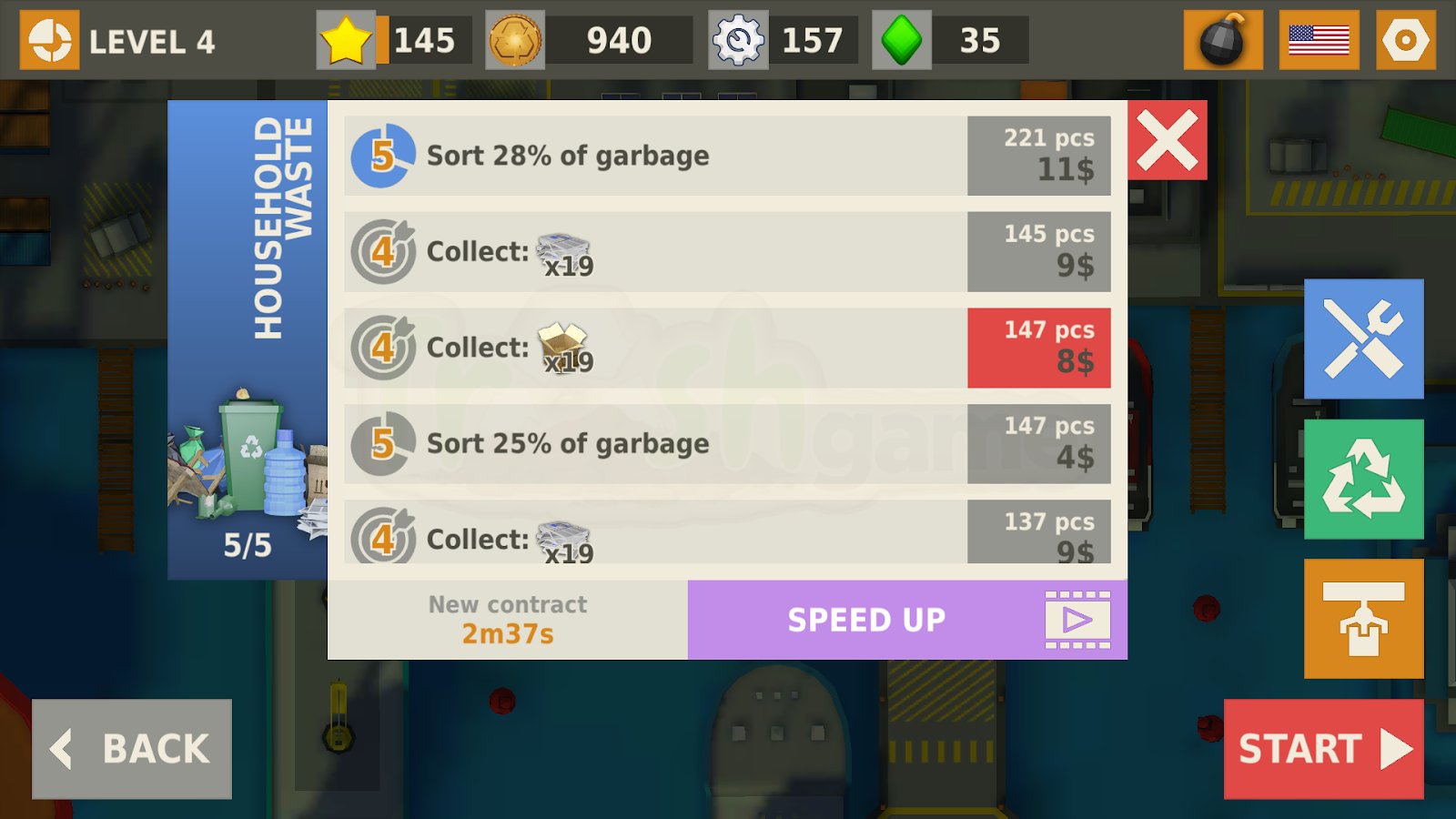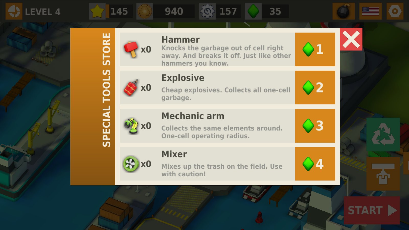 Trash game - a game three in a row puzzle game – modern game in the genre of three in a row, but here you have also to clean the city of garbage. The environment suffers greatly, the streets scattered dirt and debris and help its inhabitants to collect it all and send to processing. You will immediately feel how the climate will change and part the dark clouds, solve puzzles, and sometimes very difficult puzzles, navigate to locations and learn new professions, including the engineering scavenger hunt, and many others. Get rewarded with diamonds and money and improve your abilities.