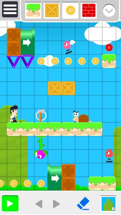 Mr Maker Run – a fun game that will help you to develop your creative skills and show imagination in full. Create a challenging platform levels, perform tasks and launch them into treatment. Think through obstacles and set tasks, don t skimp on the puzzles and share your achievements. The game features a wide range of possibilities, play in real-time and consult with other gamers. Change of climatic conditions, add the abyss and monsters and make korovenok very interesting.