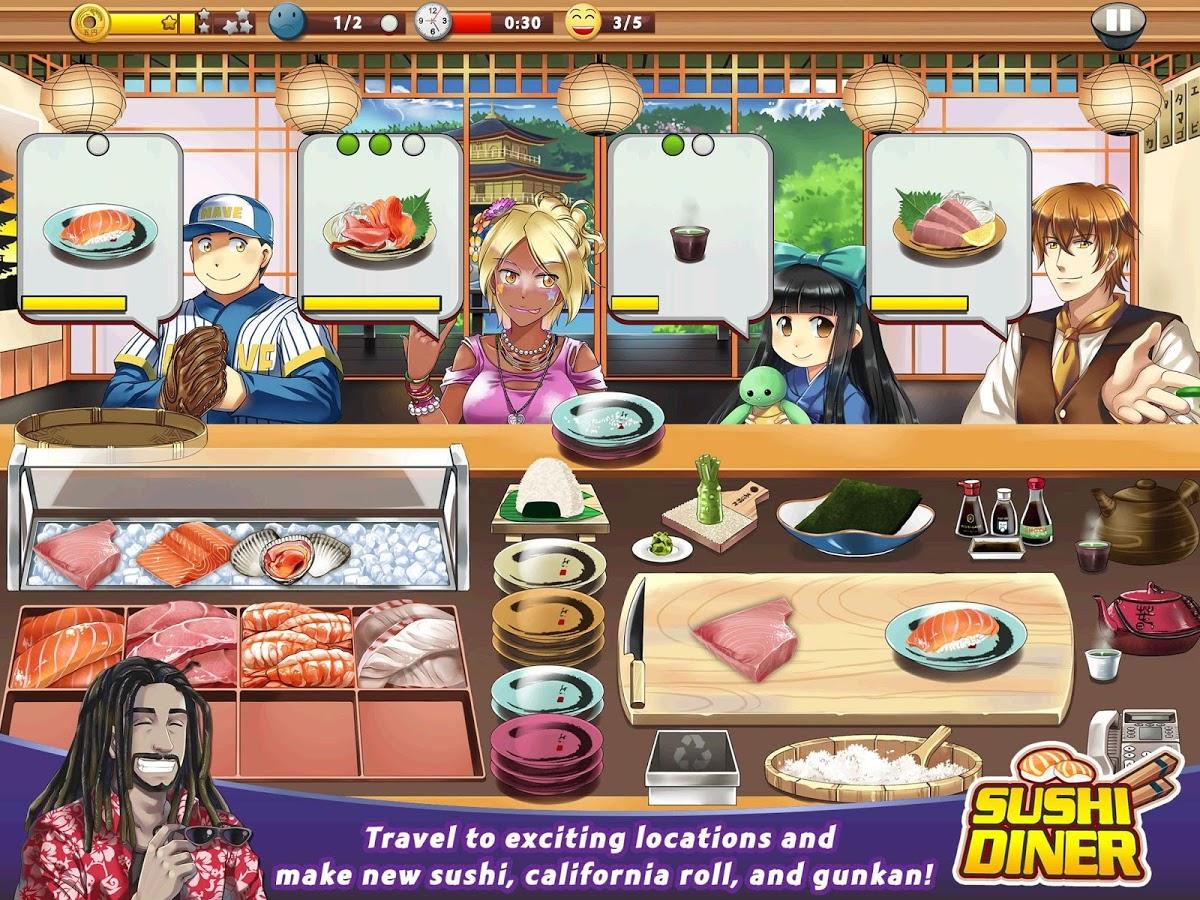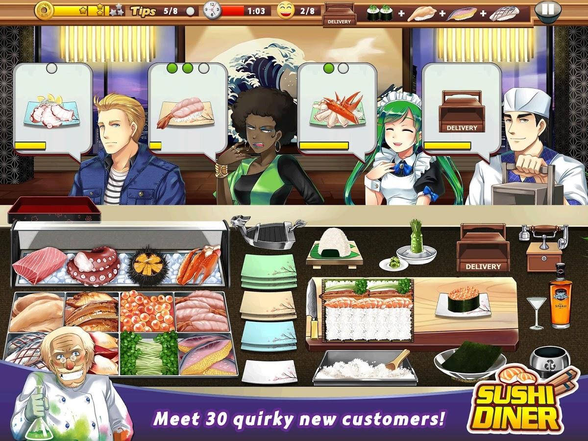 Sushi Diner - Fun Cooking Game is not just an opportunity to open a restaurant, here you can find the recipe for the most delicious sushi. Open the school, which will specialize in cooking Chinese and Japanese cuisine and attract the attention of customers. Decorate room and buy new equipment, hire retries, will travel to scout the heap recipes of rolls and sushi and surprise the visitors. Bleed skills and carry out orders as quickly as possible, earn money and get fame.