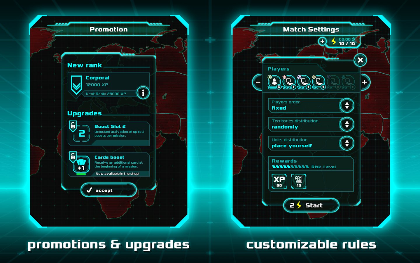 Risky Wars is a powerful strategy game, where you have clearly thought out plan of action and capture enemy territory. Go through the levels and sections, your job is essentially tips on how to succeed and conquer the land. Earn rewards and get the card exchange, explore locations and strengthen yourself, strengthen abilities and knowledge. Participate in tournaments and competitions and will receive awards, compete with auto rivals, or choose a real player. Enjoy crisp graphics and turn your head.
