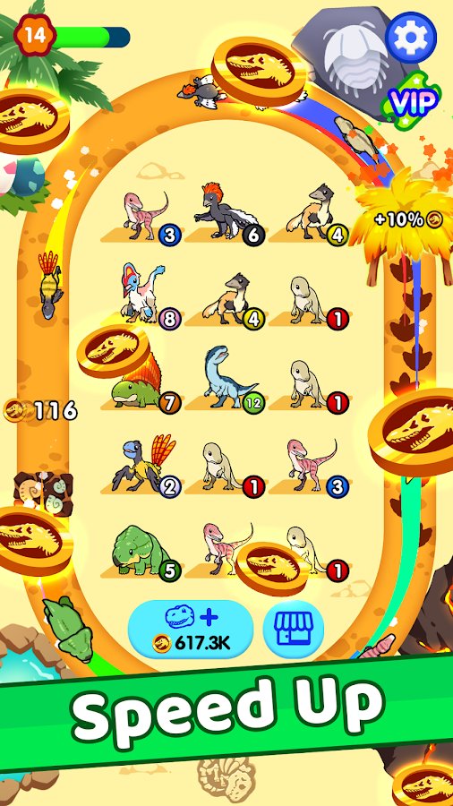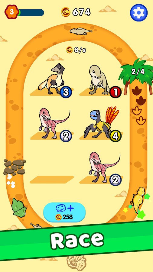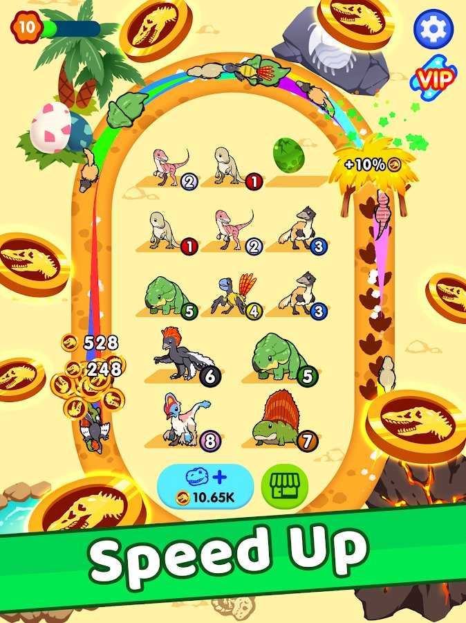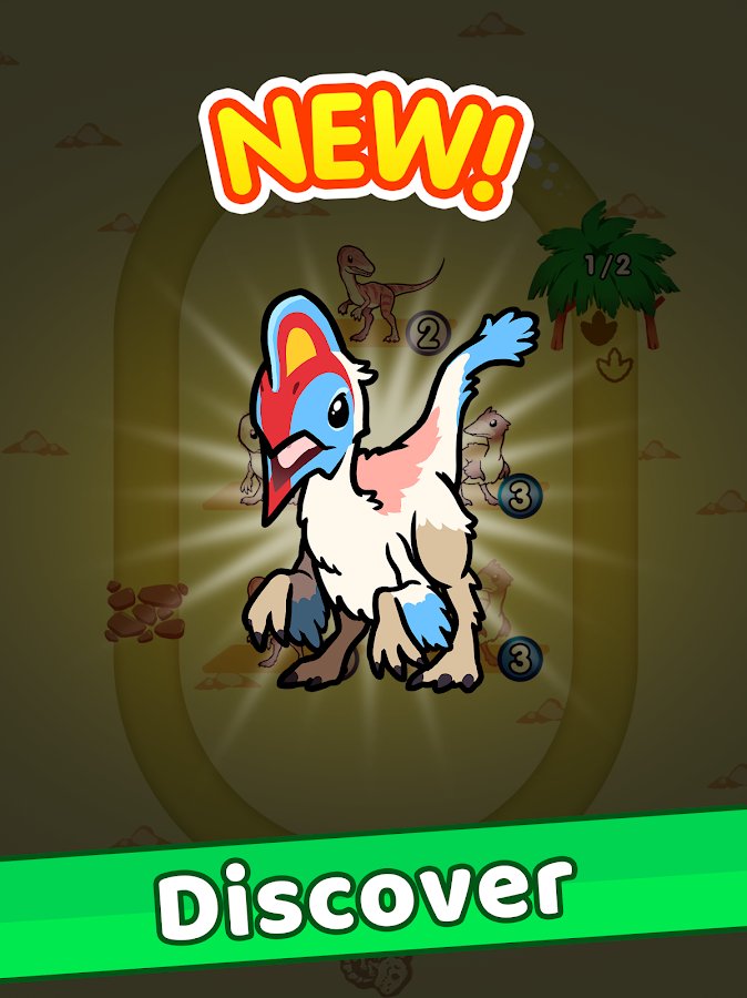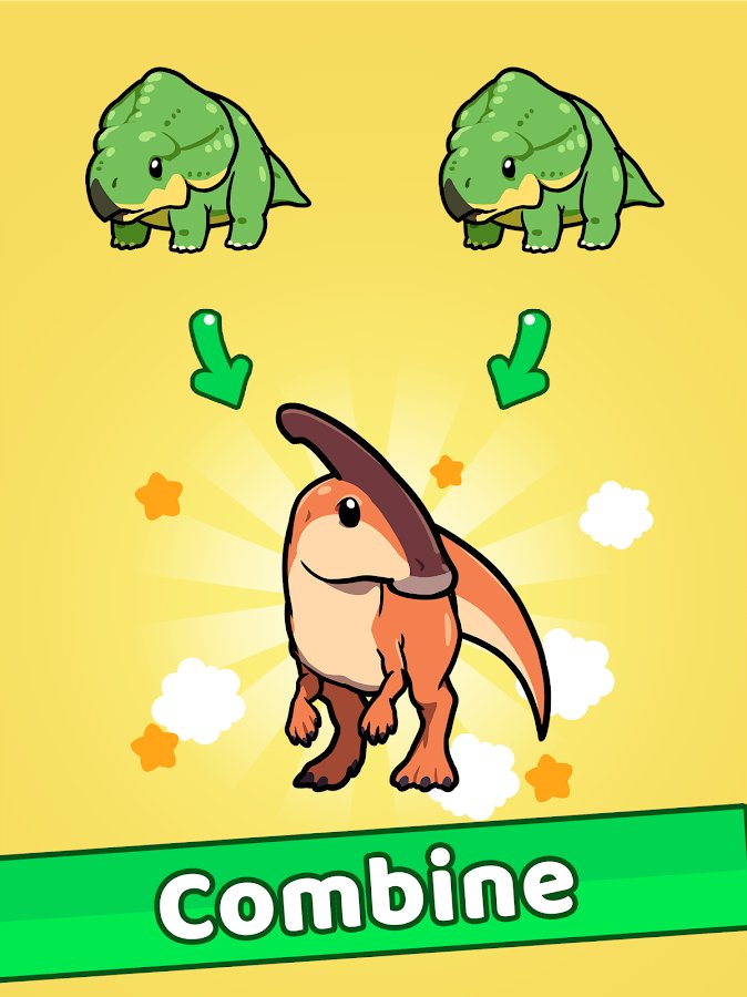 Merge Dinosaurs – a colorful puzzle game which is suitable for play by children. It will help you to develop logic and reasoning, teach attention and patience. Your task is simple: find all the hidden locations of the dinosaurs. Opening them you will be able to replenish their unique collection and earn a reward. Combine found characters and create new ones, discover what there used to be a huge creature and what kind of lifestyle they led. The animals are well drawn and they look close to real.