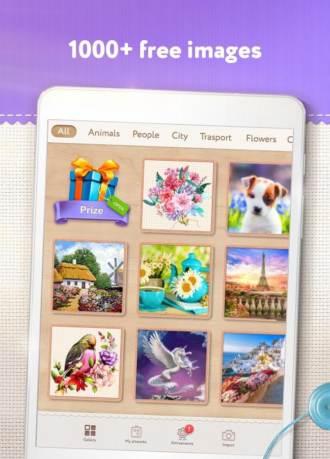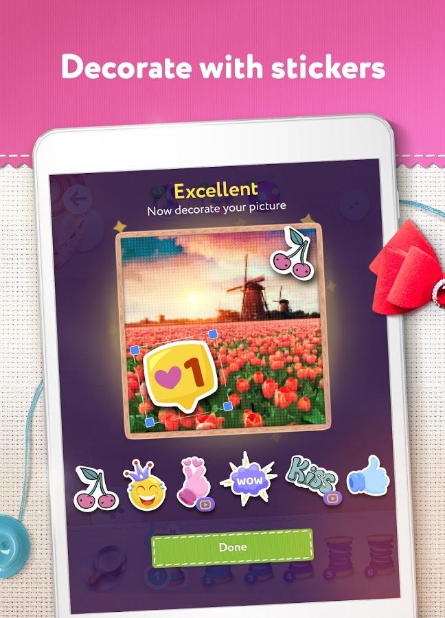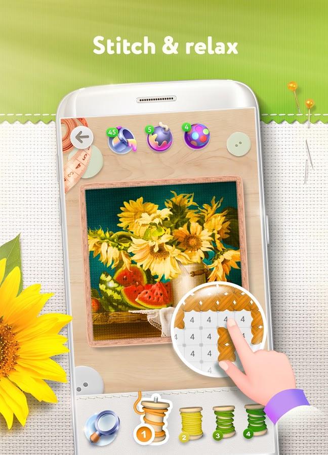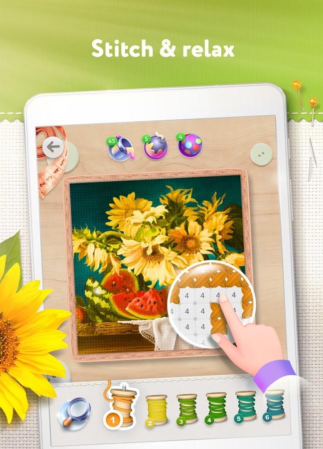 relax, embroidering together a miracle with the game coloring: cross-stitch numbers. More than 1000 free pictures: animals, people, insects, sweets, and even unicorns. Improving drawing skills and visual taste, due to experiments on flowers, dive into the atmosphere of art. The game has daily bonuses and gifts, which is interesting to spend time. Coloring book is suitable not only for adults but also children. After all this relaxation for adults and for children - exciting game that you will want to return every day. Also, there is a function to share each picture in the social. networks that others have seen your masterpieces.