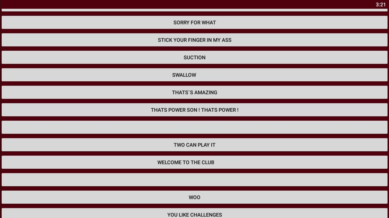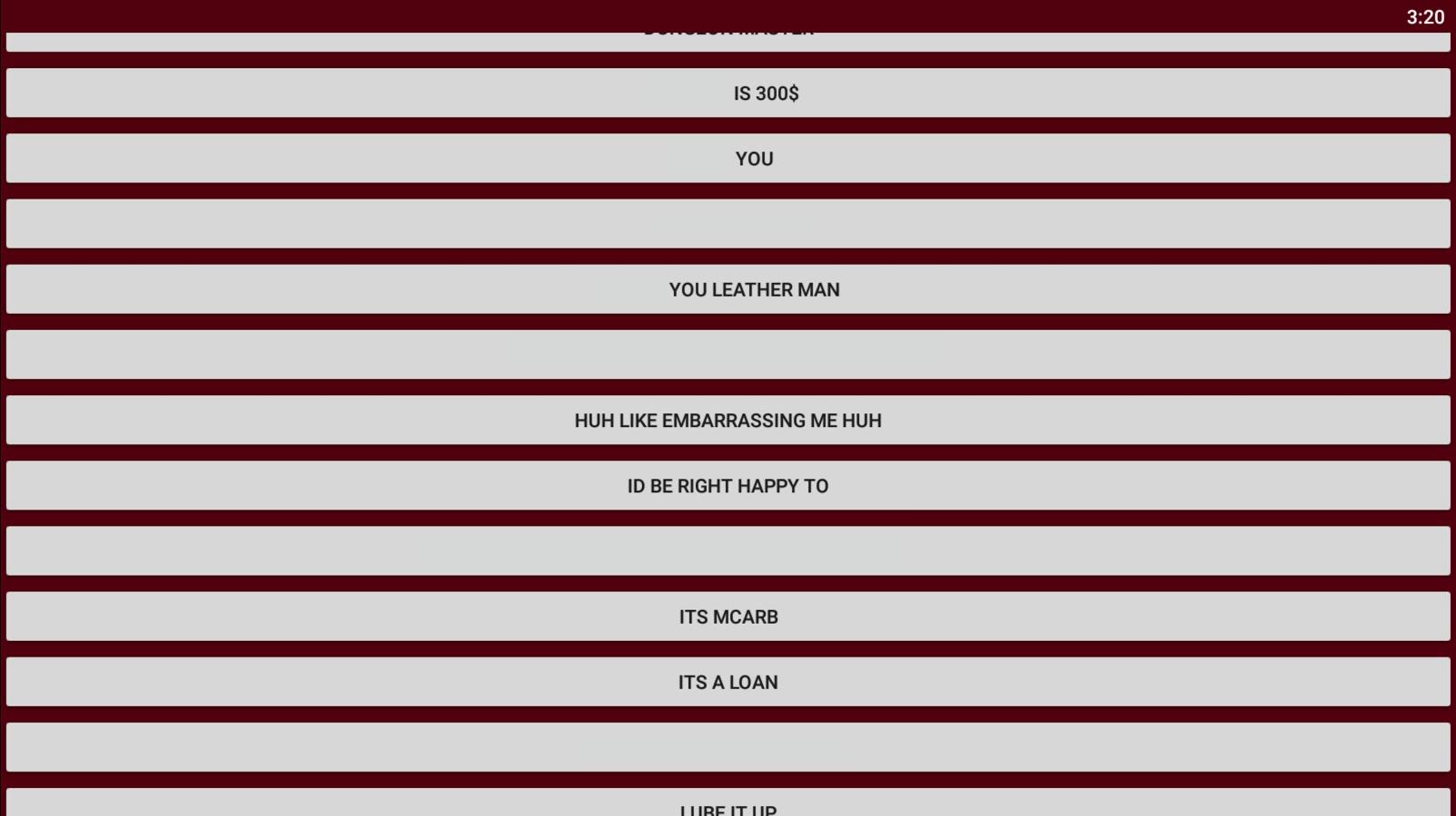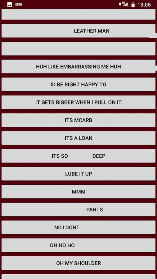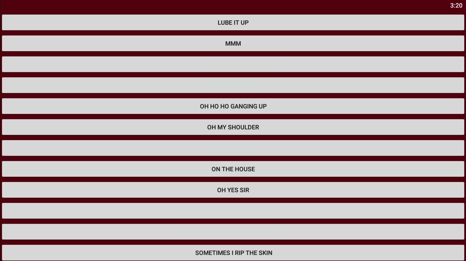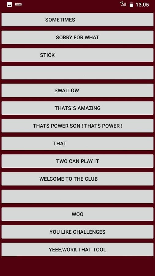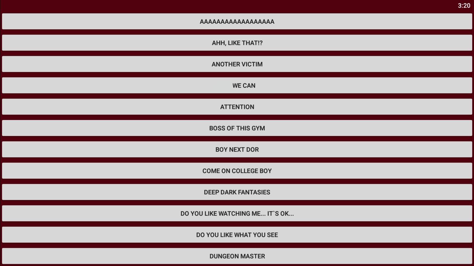 Gachimuchi Soundboard is a collection of cool sounds of your favorite actors from Hachimaki. Listen to all the phrases, click on all at once and hear a real choir. In the present application the usual sounds (screams, laughter, fear), signature phrase (We can; Is 300$; Oh yes sir) and whole sentences (Welcome to the club; Thats power son! Thats power!; Sometimes I RIP the skin). The controls are simple - press the buttons with the text, flick up or down. Main advantages: often added sounds and voices clearly heard.