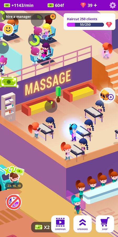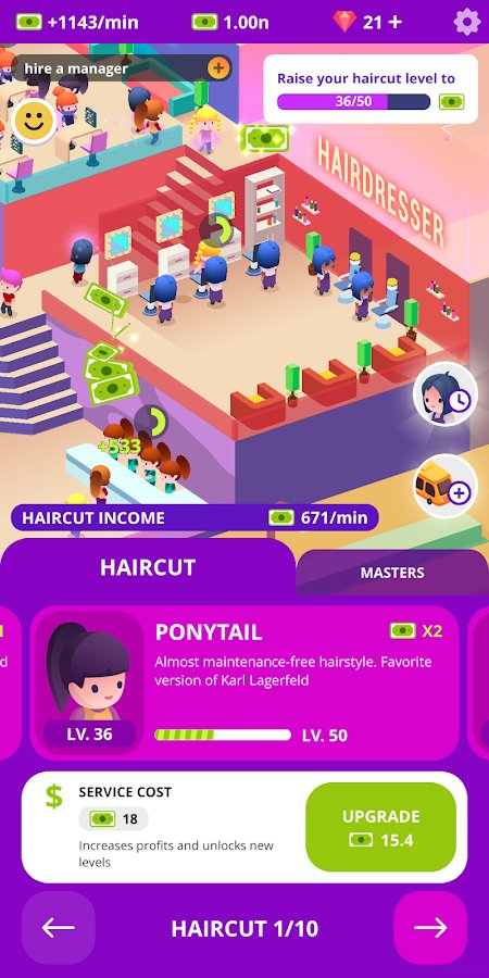 Start with a small space for a hairdresser and makeup done and a huge salon with different areas in the game Idle Beauty Salon! Hire craftsmen, improve their skills, efficiently serve customers and earn more profit. Entice advertising clients and free Parking! Hairdressing, manicure, tattoo, Macapa, Spa, hair removal, plastic surgery, stylists, fitness in one place, is not it a Paradise for residents of the town? Anyone can now become beautiful doing nothing.