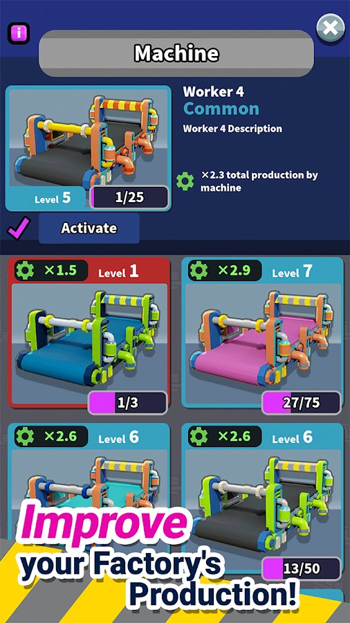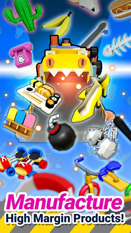 Become the best owner of several factories, which will be creating different things (peppers, bombs, bikes, footballs, headphones, watches, cacti). Each factory will have its offices with special abilities (moving boxes, unpacking, the process of creating something new, etc.). Technology will help to accelerate (if it is constantly improving), but still have to be considered good candidates to work and sign contracts. Feel the fragrance of glory and the perfect mood of big money coming into the account.