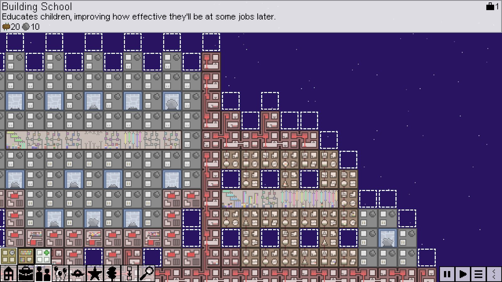 When the Earth is gone, there was no other choice but to move into space and begin to live there. Unfortunately, not many people survived, resources were few and morally depressed. Try to become the commander in chief, which will resume the planet, starting with addressing the problems of humanity. Build houses and other buildings for life, search for supplies of food and feed the people, and also give assignments, because you re a team. When basic needs are resolved, you can begin to build the city of your dreams! Watch and enjoy.