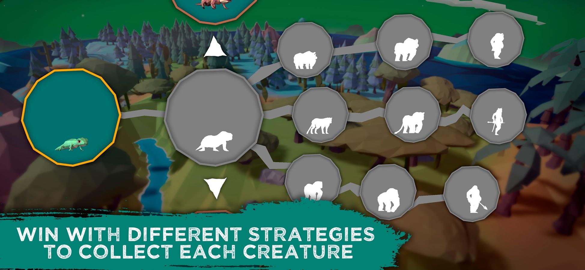 EVO ISLAND to explore and settle the mysterious island by finding new species of animals. Even with a trivial frogs can transform into a terrible monster, or a brave warrior. Carefully choose the place of residence of every creature, so that they do not fight with each other and you haven t lost the chance at an amazing discovery. Biomes on the island are different from each other, learn their animals and select the most suitable: dense forest, beach, glacier, desert and mountains. Ready to put a lot of experiments and to choose the path of science?