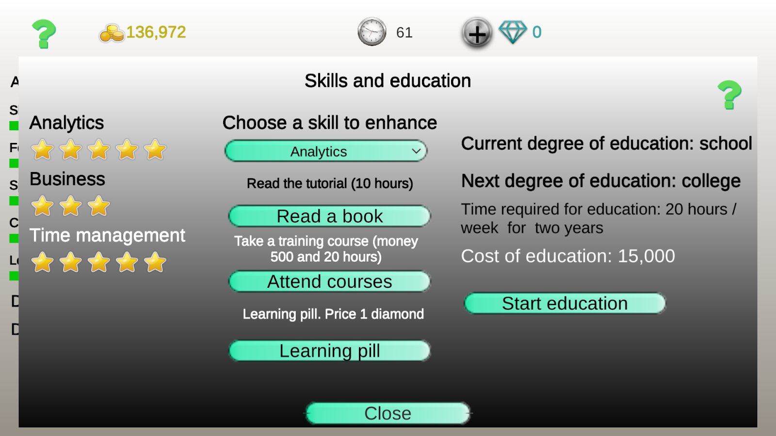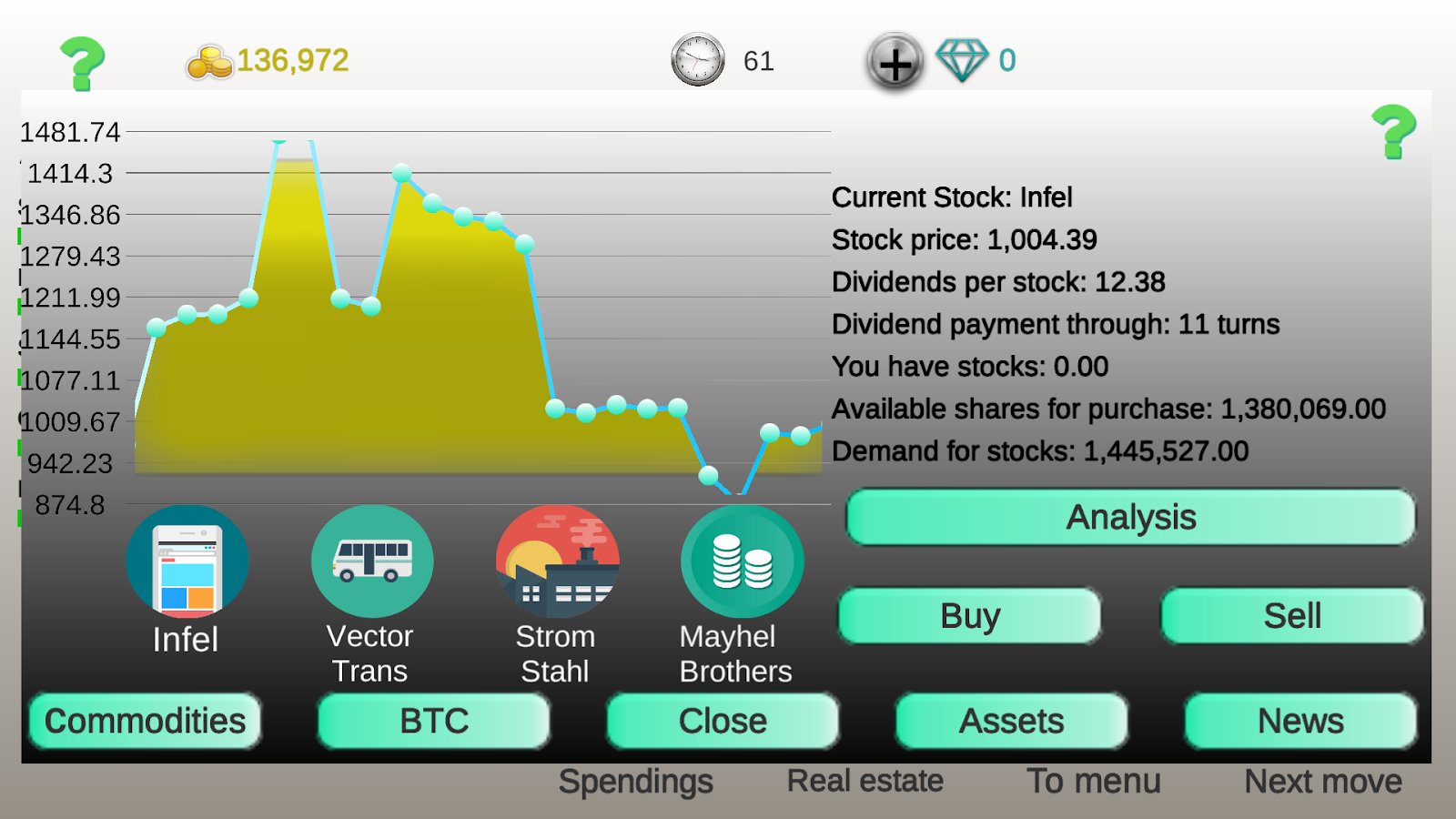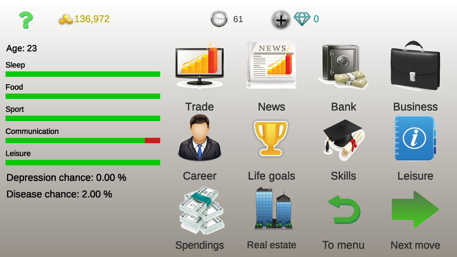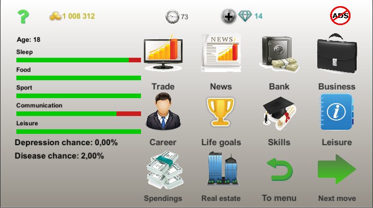 Business strategy 2 - make a big step towards the development start making steps towards your own business. In the beginning you will have to work for someone else, then gradually go to the exchange, and later to start a profitable business. Profitable trade, view latest news, keep large amounts of money in the Bank grow your business and career, set goals in life, improve your skills, control costs, buy property, take tenants and become popular tycoon. Don t be afraid to start new projects, but don t forget to efficiently complete old!