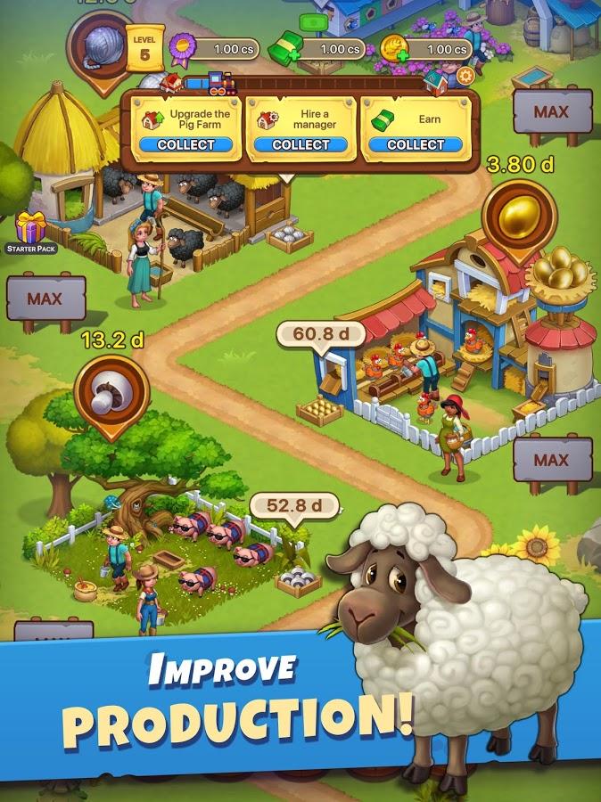 Idle Farmer: My Village Story - in our time is to work with farmers has become much easier: almost all processes are automated and run on their own. Profit from the crops and animals, hire managers, and buy modern equipment, fight for the title of a popular farmer in the world, watch the expansion of your farm and purchase new territory for development. Better animals, so they changed in appearance and quickly gave useful resources. Collect cards and build on, not stopping at what we have.