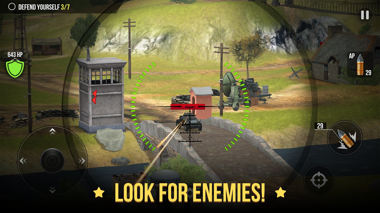 World of Artillery: Cannons - find hidden enemy military bases to put heavy artillery into practice and show what you are capable of! Even during the Second World War, you will have to rise from the ground up from scratch and improve your own abilities as a gunner while your base is still in the same place unharmed. Develop a strategy in which the maximum effect of attacks will be obtained, perhaps this chance will lead you to the long-awaited victory.