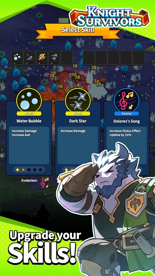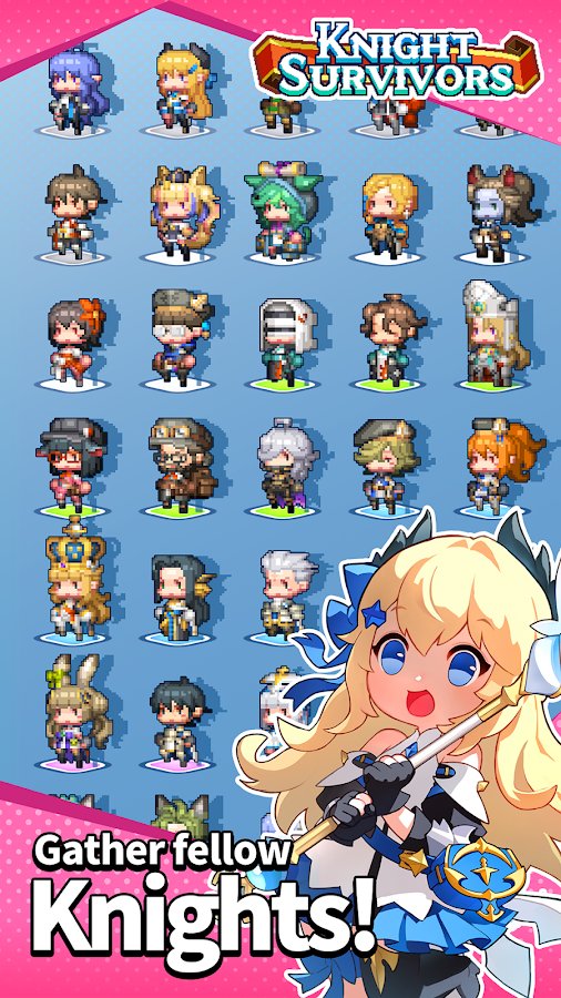 Knight Survivors - Survive in a world alongside slimes, goblins, orcs, griffins, and spiritual kings as brave knights, who must swear allegiance to the people and rid themselves of all creatures that hinder their peaceful existence. Every day, these creatures attack them, and the number of victims grows, so you must simply survive, improve your current abilities, gather as many warriors as possible for future battles, provide everyone with the necessary equipment, and engage in intense battles for the development of civilization.