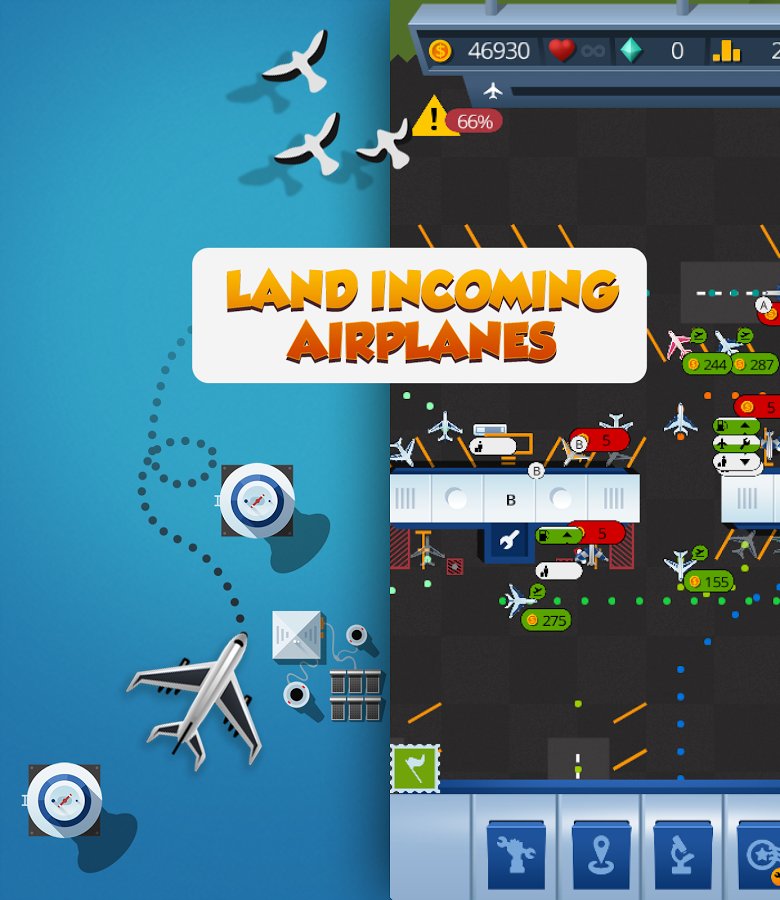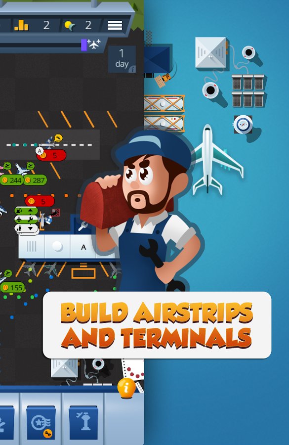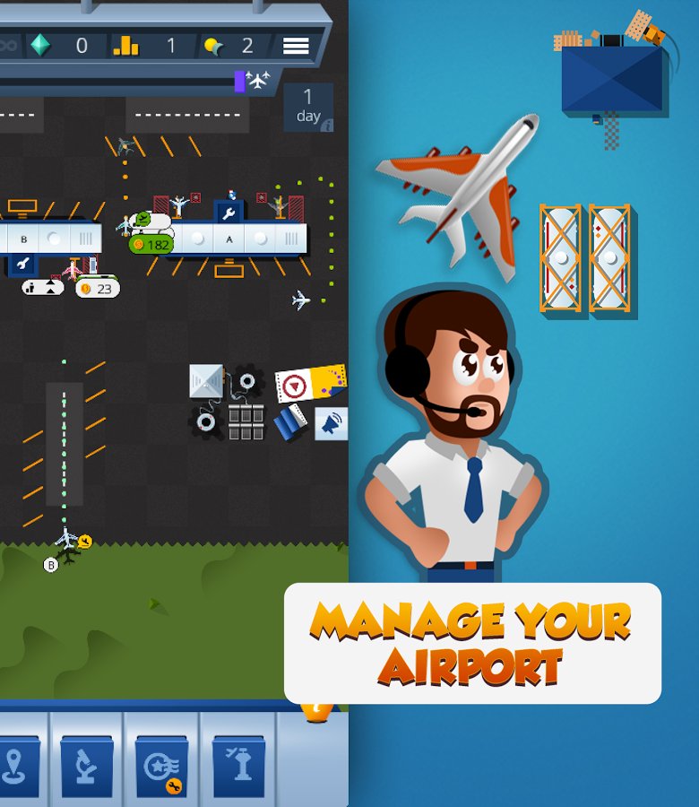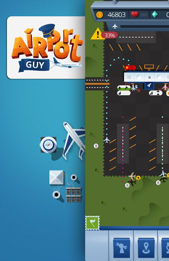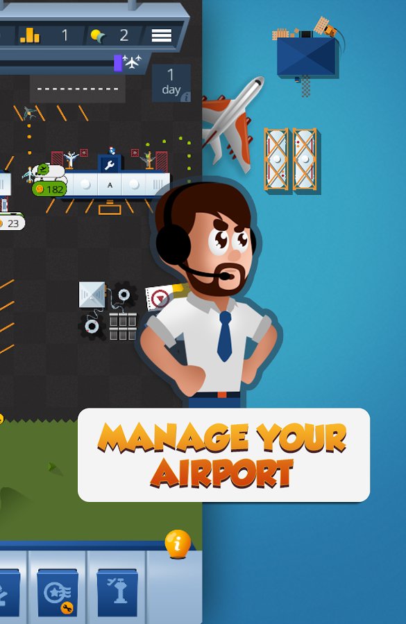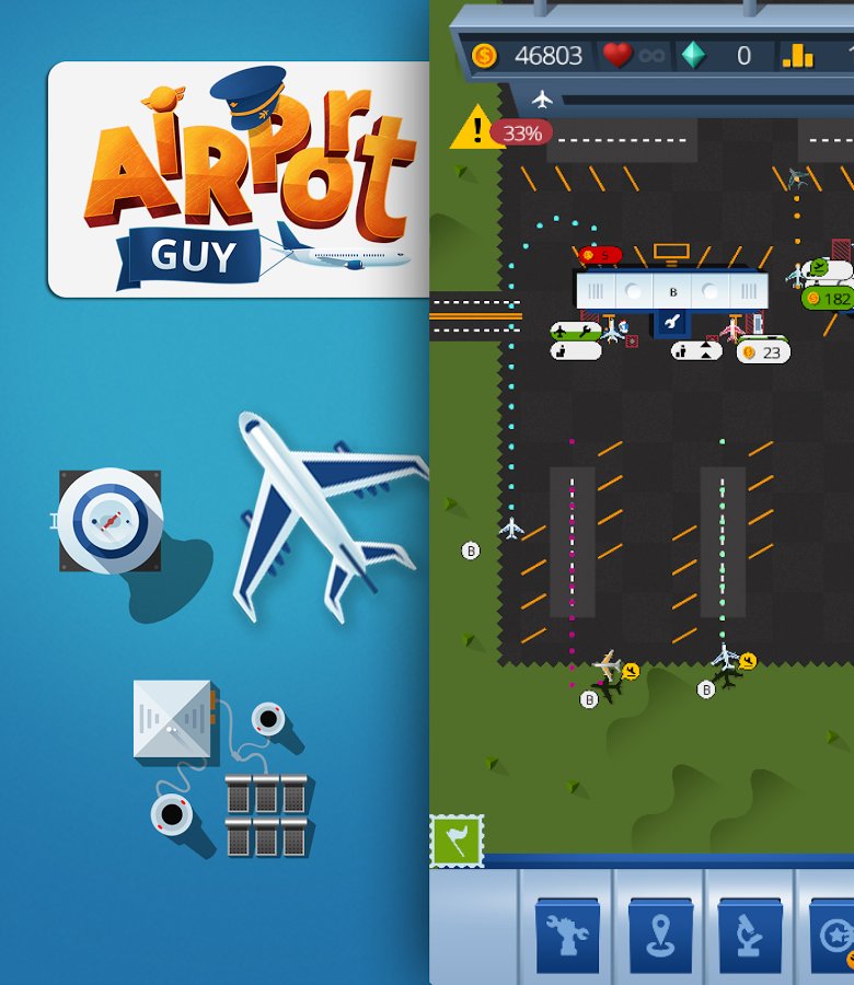 Airport Manager Airport Guy – a game on Android where you take control of your airport. In this game you will control a huge airport and carry out various missions at the same time, avoiding accidents. Become an experienced air traffic controller and guide planes on the availability of the strip for takeoffs and landings, establishing thereby the smooth operation of the airport. Earn great rewards for each successfully planted the plane and develop the airport. Construct different buildings, additional buildings and lanes and discover new planes. Become the best player in this game and achieve excellent results.