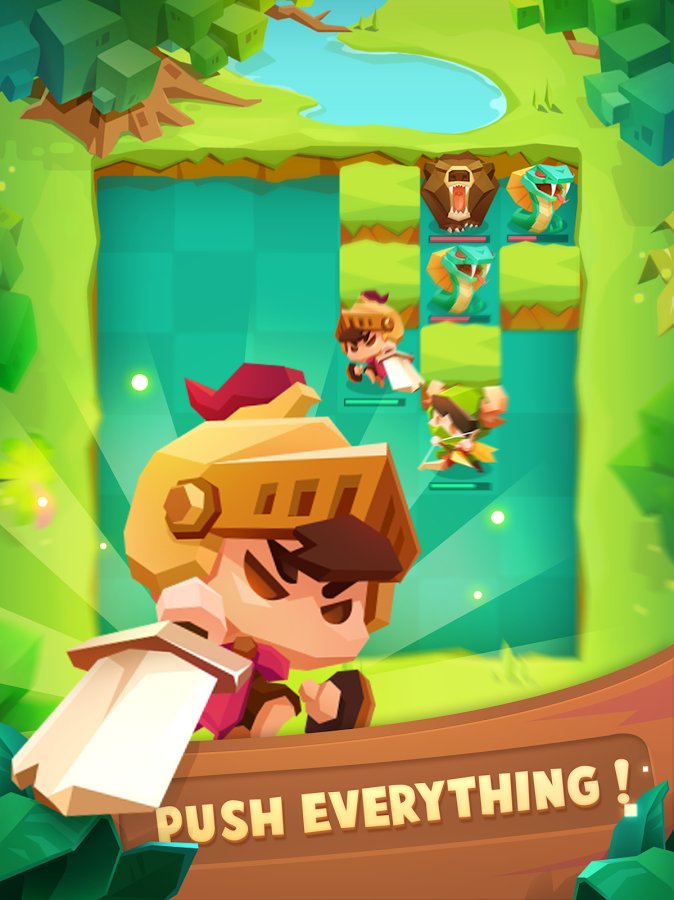 Push Heroes – strategy on Android where you will help the brave knights to fight with many monsters. In this strategy RPG you will take control of a brave hero, each with their own unique skills and abilities, and takes him through various levels, fighting monsters and gaining points. Your character will be able to wave a sword, shoot a bow and apply fighting techniques against enemies. Develop your tactics of warfare and use wisely all the skills of the hero. Use combo attacks as fast as you can destroy all monsters on the levels of this game. Improve your skills and make the hero stronger and more resilient.