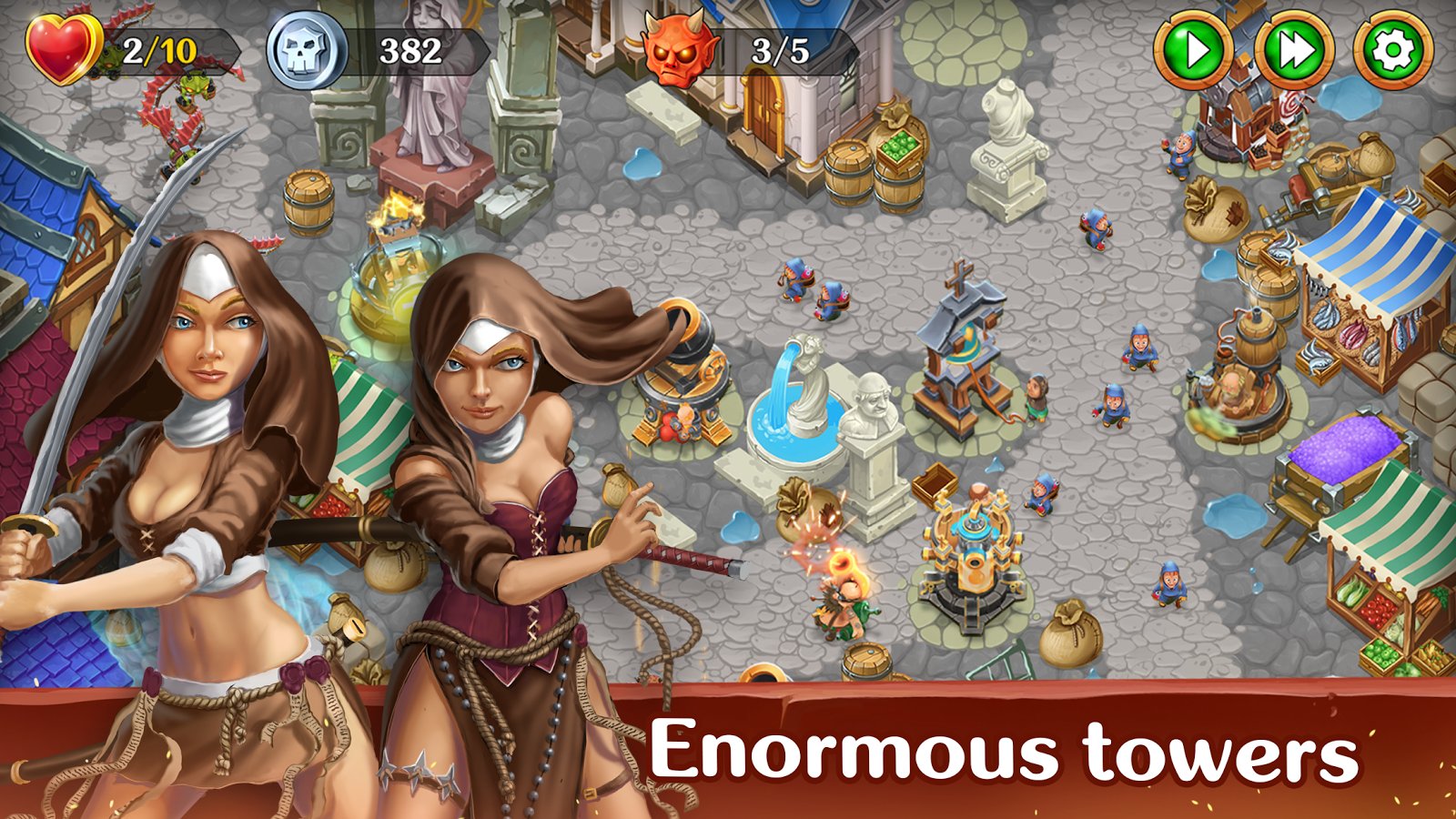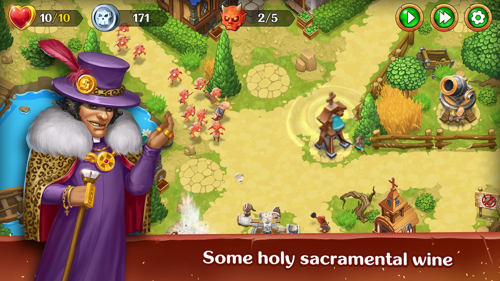 Holy TD – strategy in which you control an army of saints, and not to allow the demons to break through into your world. Build on the way special towers and summon heroes that are able to overcome the enemy. Hordes of demons and demons are from the underworld and is ready at any moment to enter your world and destroy it, don t let them do it. Set your enemies tower with arrows and monasteries with monks, and also build various fortifications and towers. Employ the service of the saints, which are known for their strength such as: Abbot Drunkel and cardinal Borgia. Fight not only the strength of the saints, but also a powerful weapon is to defeat the enemy.