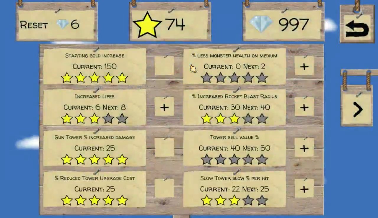 - 8 towers each have several update options