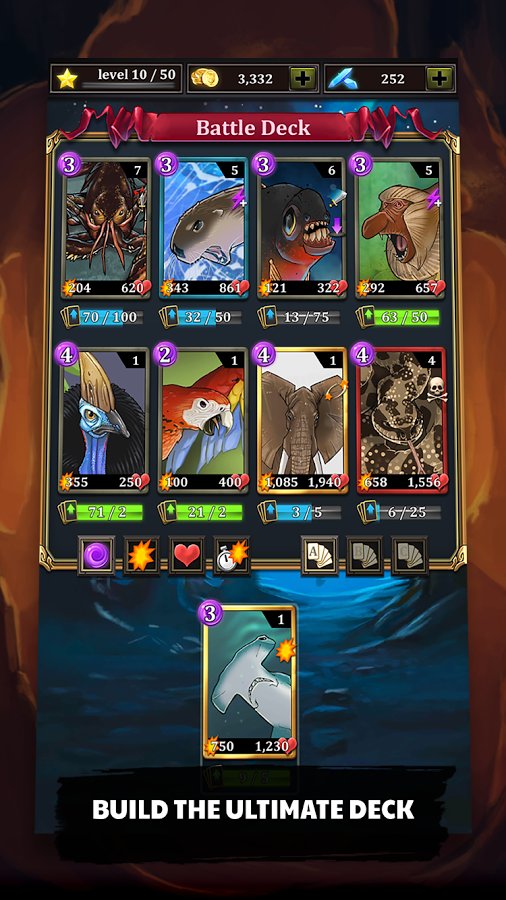 Savage Heroes Battle Cards TCG / CCG card game on Android where you will collect your own unique collection of cards with pictures of various animals. Create an unbeatable deck of cards and fight with other players, arranging games. The game features several game modes where you can hone your skills by playing against the computer or fight in the arena with friends and other players from around the world. Improve their cards, making them stronger and unlock new combat abilities. Raise your ranking to incredible heights and share maps with your friends. All the game features more than 60 unique maps and 3 game modes.