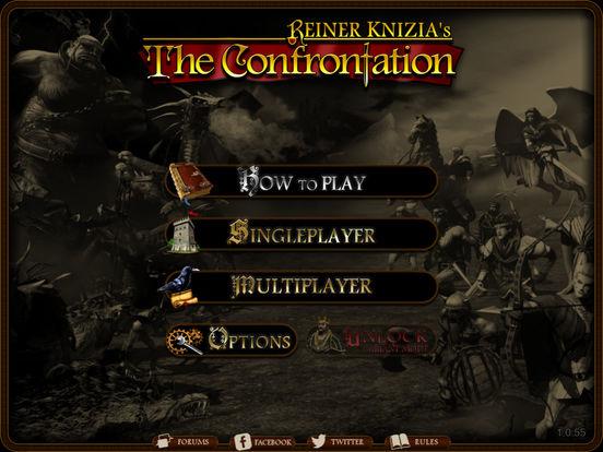Reiner Knizia s the Confrontation is a tactical turn based strategy game for IOS where you accept your part in the struggle of light and darkness. Choose the side you fight on the side of good or evil and start to capture territory. Develop your tactics of warfare and consider this features of the landscape, ambush for their enemies and seize new territories. Use a variety of maps that will help you to increase your strength, which will allow you to single-handedly defeat all his enemies. Play against computer opponents or battle your friends in online mode.