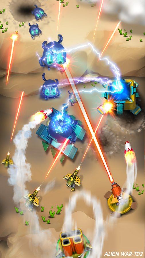 Tower Defense: Alien War TD 2 is the sequel to the popular strategy for Android, where you will defend the tower from enemies. The aliens with whom you fought in the last part not all the dead and now gathered a new army to attack you. In this part of the game will challenge gamers which will develop an unbeatable strategy given mobile artificial terrain, which will add complexity to the game. Use new weapons and prevent melee attacks. Play this game and enjoy colorful graphics of ever changing landscapes and destructive weapons. Destroy all approaching to your base aliens and don t let them defeat you.