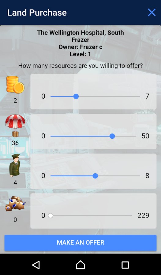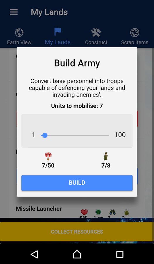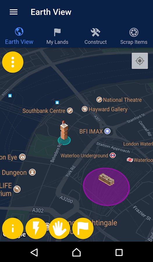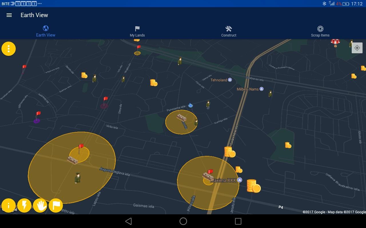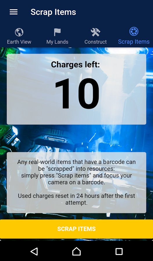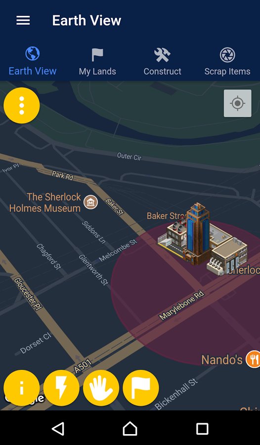 Domination: Earth – a fascinating strategy for Android, with more reality. In this game you will have a great opportunity to conquer the world. Your task will be to navigate in the real world and conquer new territories. Collect valuable resources and use them for the construction of the military base, placing rocket launchers in your backyard or structure of the Navy. Expand your global influence around the world and explore new places and cities. But also due to the regime parsing things you will be able to get out of the house in order to gather the resources you need to parse objects that have a barcode these items include books, CDs, cans and virtually all other items.