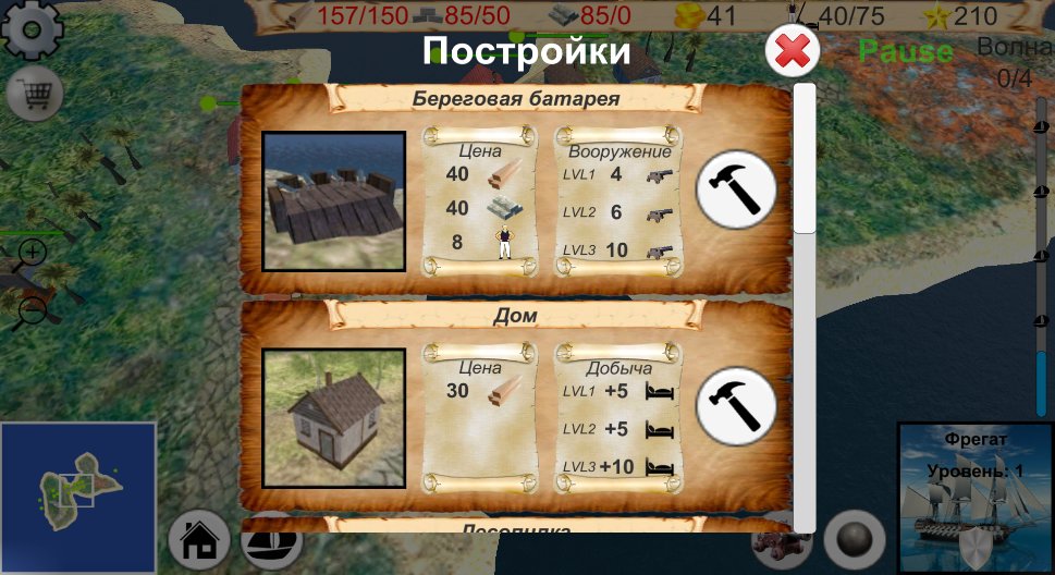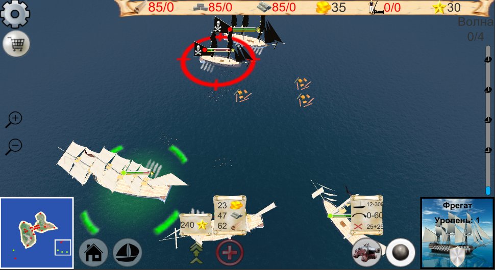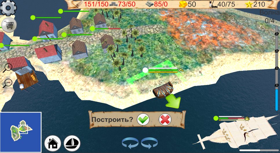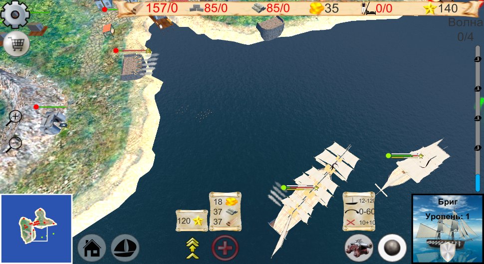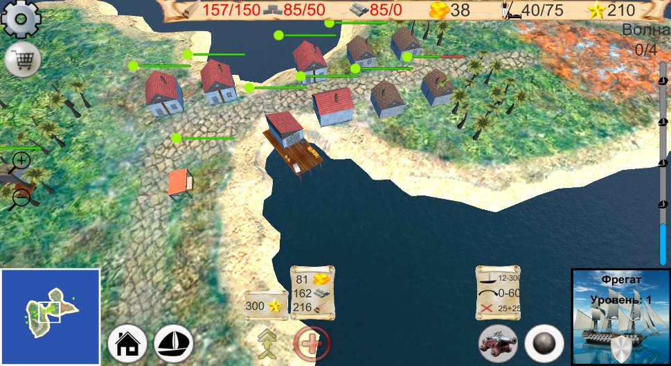 Harbor Defence – addictive strategy game for Android where you will play the role of a prospective captain, who tamed the difficult mission to destroy the pirates. Numerous pirates have seized several Islands in the Caribbean sea and now your task will be to bring them under thoroughly the crown. Control a military ship and fight pirates and enemies, while earning experience and gaining valuable resources. Conquer all the Islands from pirates and build your defenses these district. Build houses, sawmills, coastal batteries and walls and protect by all means the island from pirates.