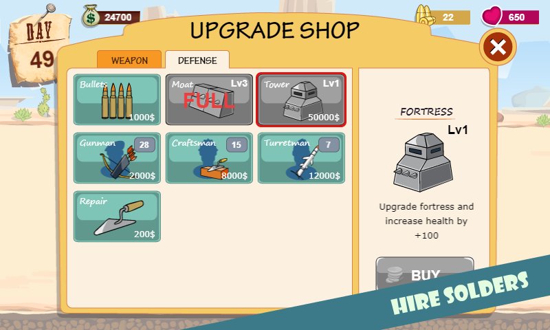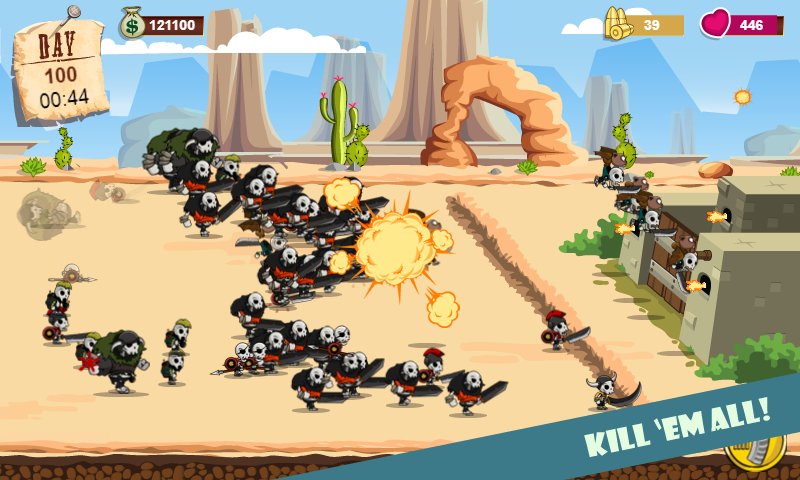 Zombie Tower Defense: Reborn – fight dangerous creatures, monsters and zombies with a huge variety of rugia, blood and guts! While in the tower defend humanity from zombies around the world! You have courage, health, speed, agility and strength to survive? If so, start the game! Recruit militants and mercenaries, to protect yourself against 50 waves of attacking zombies. Hire craftsmen to repair the tower during the battle. Use a variety of guns from pistols to machine guns to help the defenders of the tower.