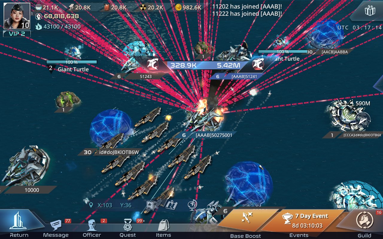 Sea Fortress is an Epic War of Fleets - new online strategy game from the famous Studio of IGG. At this time, according to the authors, the events develop in the near future, in the days when our planet was attacked by the insidious alien invaders, which in turn triggered a global catastrophe and the Earth was flooded by the oceans. You also have to gather under his command an entire Armada of ships and try to survive in these conditions. With this at your disposal will be a wide selection of both surface ships and submarines, and the opportunity to team up with other players will significantly expand your opportunities.