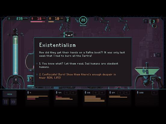 Despotism 3k – strategy game with elements of roguelike for IOS, where you ll enslave humanity. In this game you are transported to an era where the world is ruled by artificial intelligence and manipulating the little people who have to get him the power. Build a huge Empire and be careful to people doing their job and not die from hunger and fatigue. Your main task in the game will be to move people between the two buildings with a mechanical claw. In one building people have to relax, multiply to get their own food, and in another work, extracting energy, which is sorely lacking. The game will delight you with black humor, numerous missions and quests.