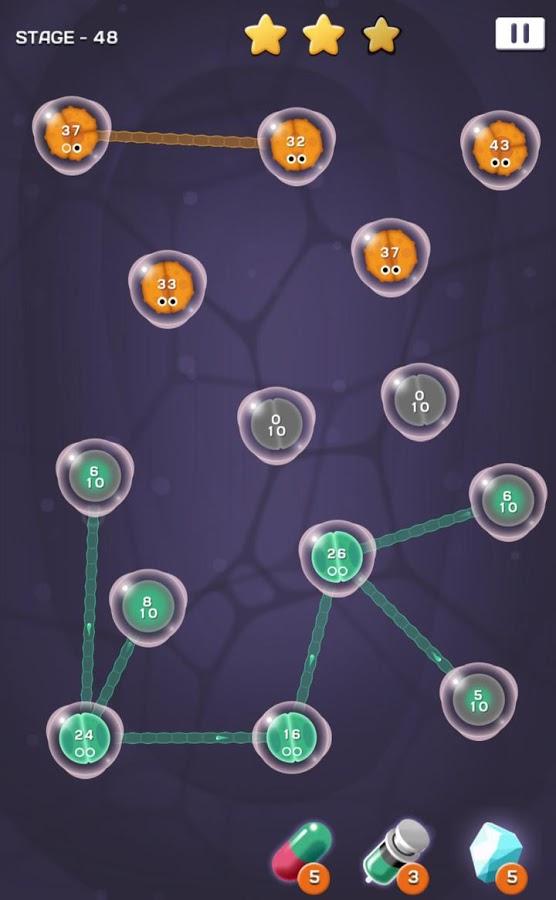 Cell Expansion Wars – an entertaining game where you control the cells of your body. In this game your main task is to protect your cells from attacks the cells of the enemy. Each level will have a certain number of cells, some of them will be under your control. You will need to take control of enemy cells and thus to protect its. Connect between different cells and strengthen the attack and fortify the defense. Use against hostile cells ancillary items and complete all the unique levels.