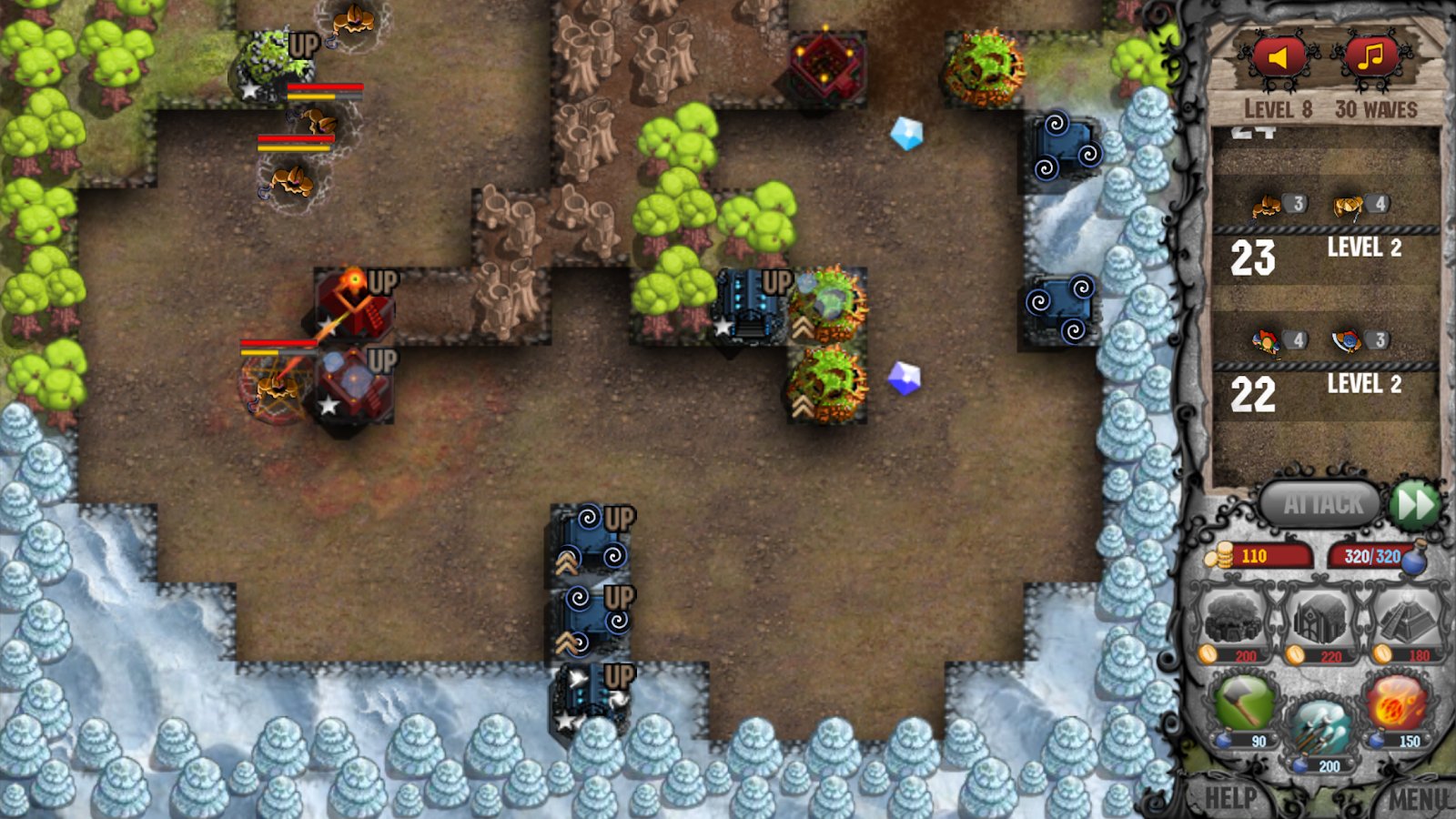 Towers with 12 different upgrades and unique abilities