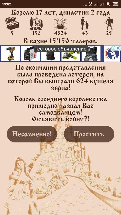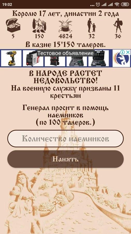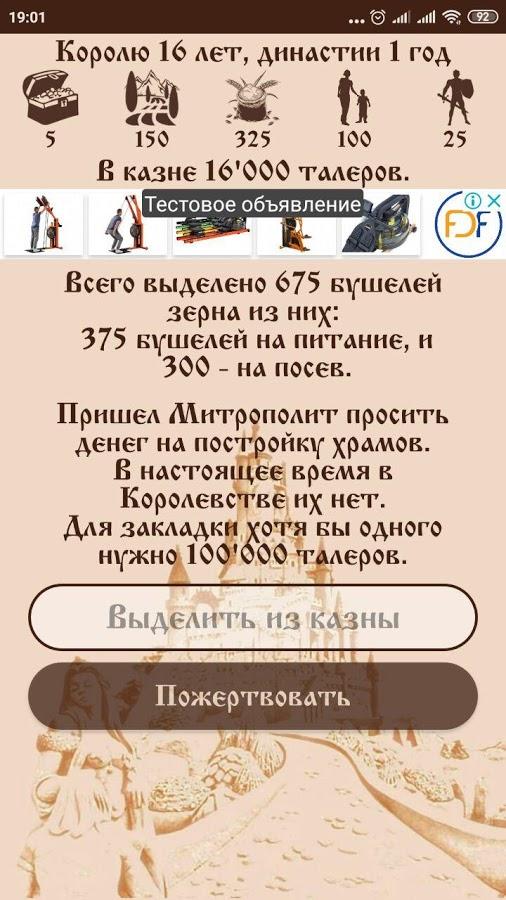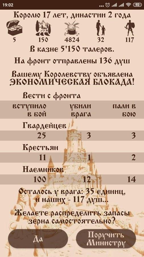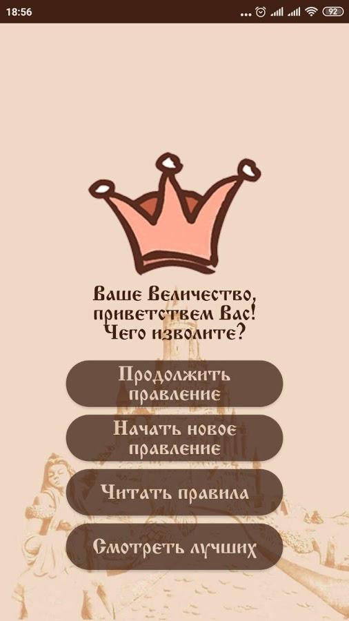 the Kingdom of Euphoria – an excellent puzzle on Android where you will play the role of king. In the game you will become the ruler of the Kingdom of Euphoria and will carry out various missions and tasks of the game. Your Kingdom has a lot of gold, money, soldiers, food and land. You have to properly manage all this at the same time develop and expand your Kingdom. But even the king can not be confident to be in the future. You may die a Queen, the peasants may revolt, do not harvest or the thief stealing the money from the Treasury.
