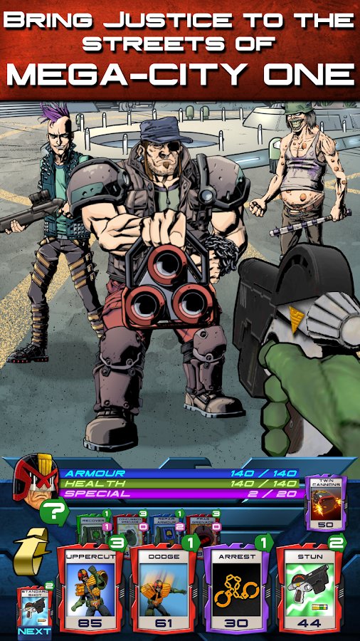 Judge Dredd: Crime Files turn - based strategy on Android in which you will play as the world famous best Judges of Mega city Judge Dredd. Go new stories based on motives of the original comic book. You have to stop crime in your city using all possible methods. Go on patrol and fight old and new enemies, bringing justice to the streets of Mega-city. You are the law.