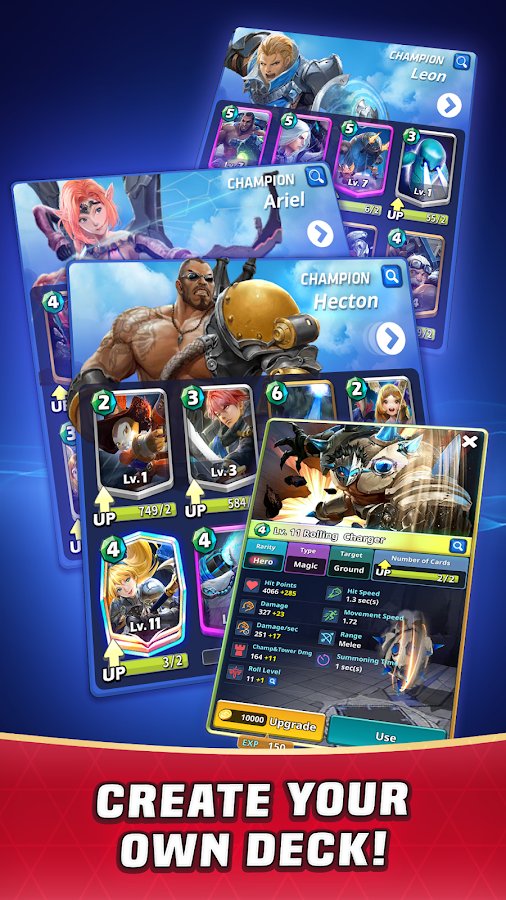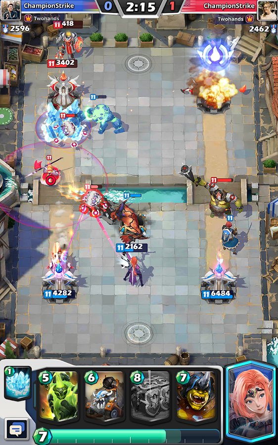 Champion Strike: Hero Clash Battle Arena – PvP strategy for Android, which will take place in real time. Take control of a brave champion and guide him through an epic battle with rivals in developing and applying its strategy on the matter. You are waiting for the unpredictable and violent battle in the arena which will give you an unforgettable experience. Take part in all the battles and try to get to the enemy base. Watch out for the champion of your opponent and anticipate his actions. Assemble your own deck of cards consisting of the characters of the world of Mysticism, Fantasy, Science fiction, Steampunk and Martial arts. Challenge stronger opponents and defeat them all.