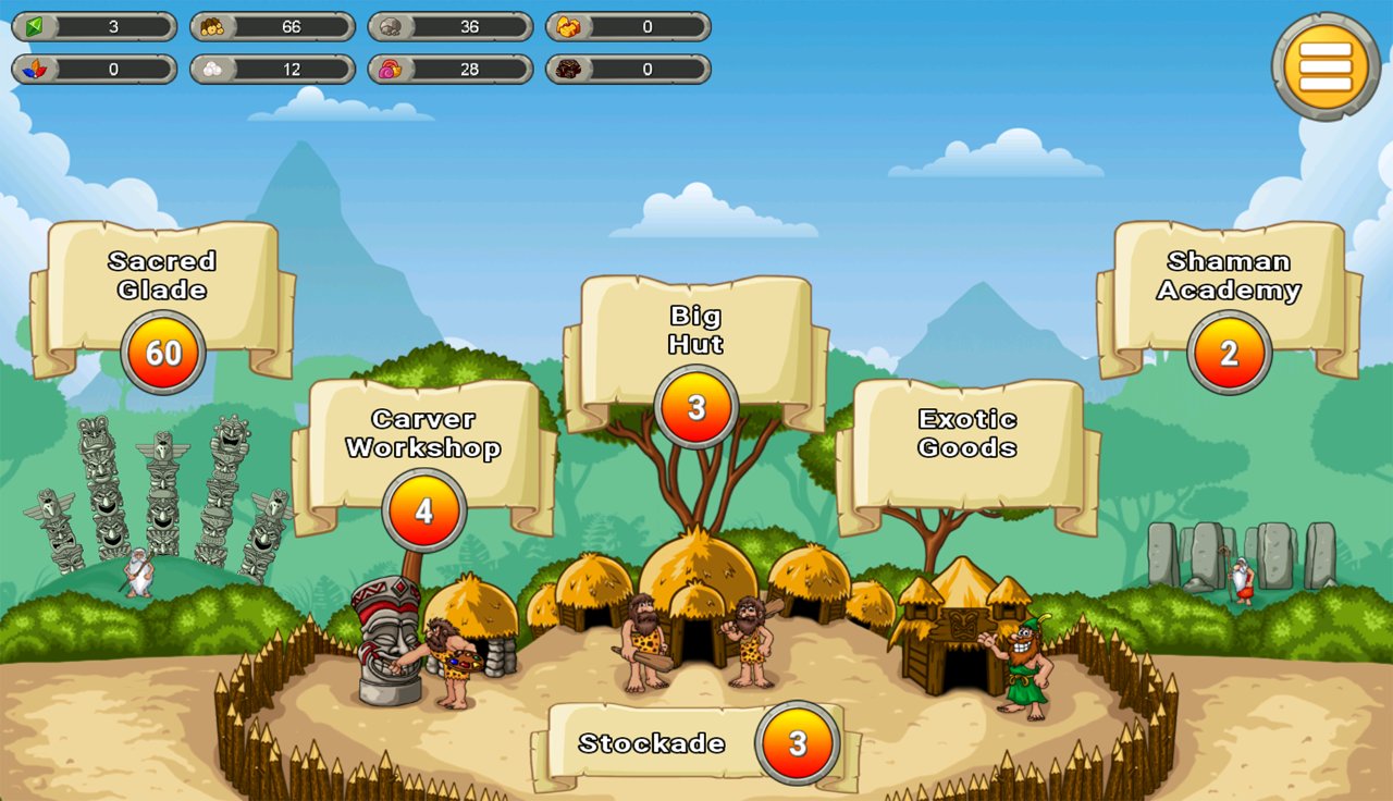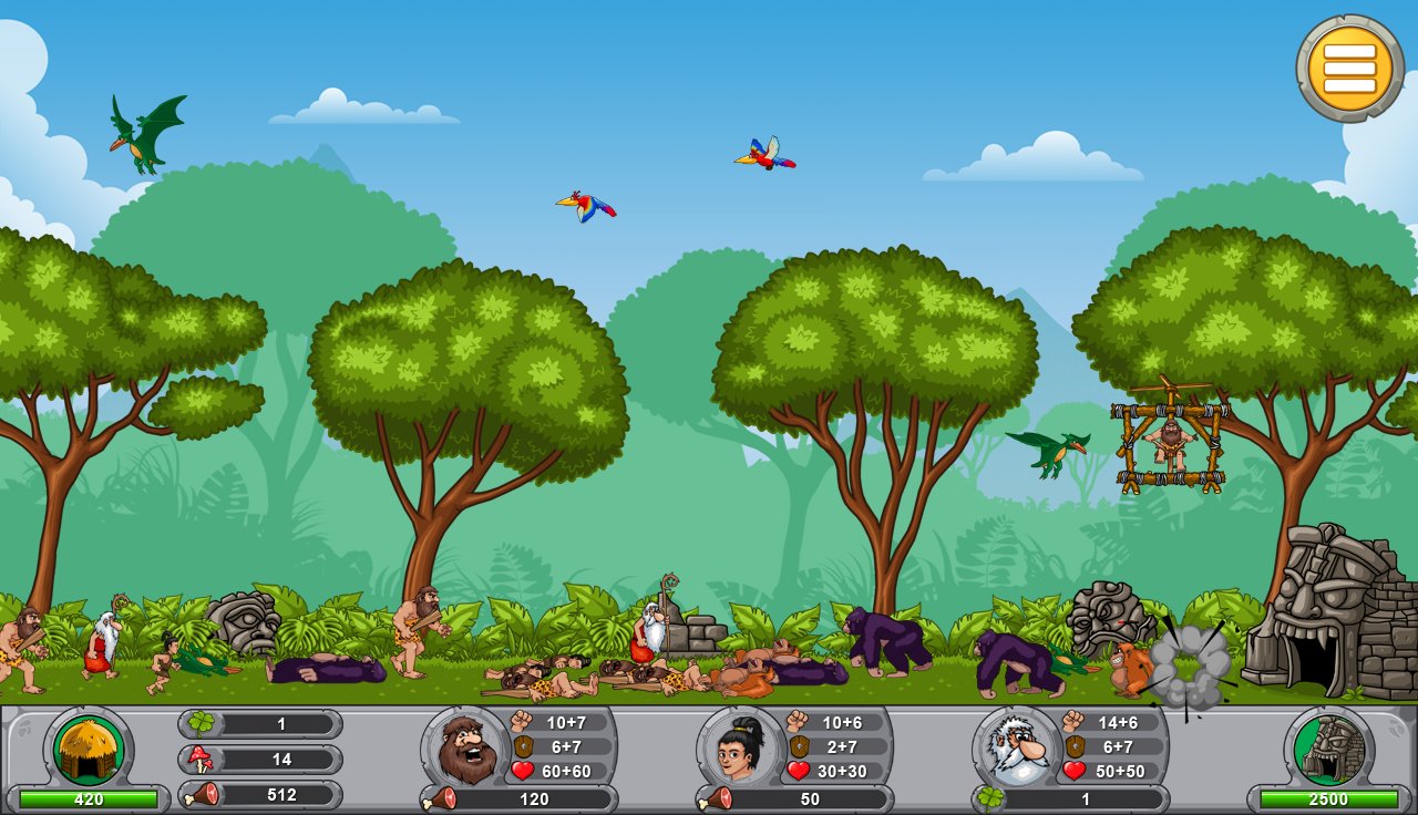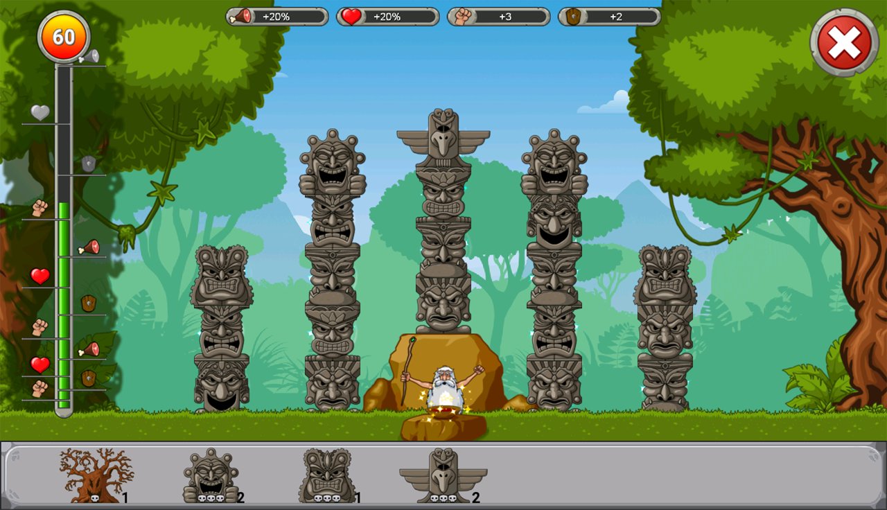 In ancient times: the Island of hope is a fun arcade role-playing strategy that will show you the stone age just on the other side. You – the leader of an ancient people, and the welfare of your tribe is in your hands. The essence of the game is to increase the area and improve people s lives. Includes several Islands which are open for development. The only thing – they are full of dangers: devious monkeys who don t want to give away their possessions; poisonous snakes waiting at every step; dangerous birds, and strive to throw something heavy at his head. Allies in battle will not only villagers, but also a heavy batons, sharp stone axes, poisonous Darts and an ancient flying machine. The strength of the army depends on the morale and the number of idols in the sacred meadow.