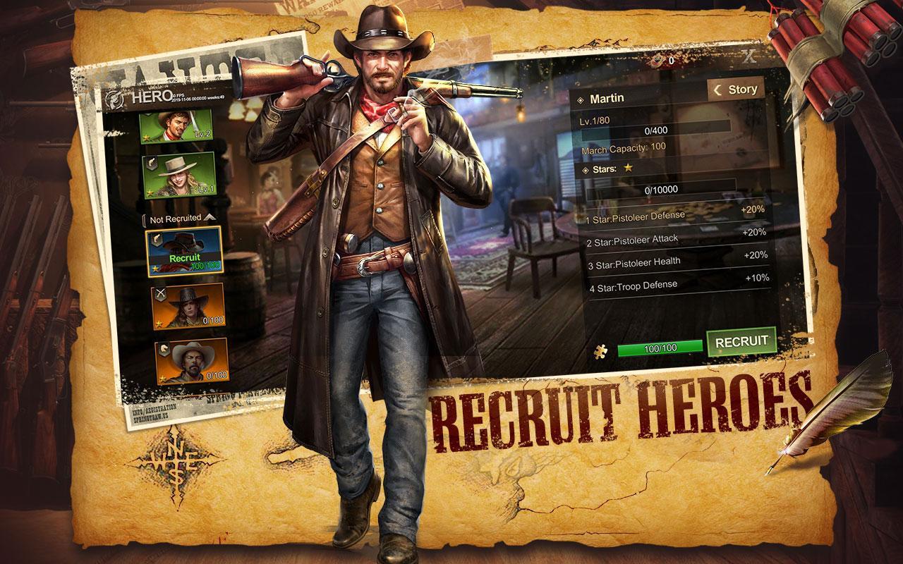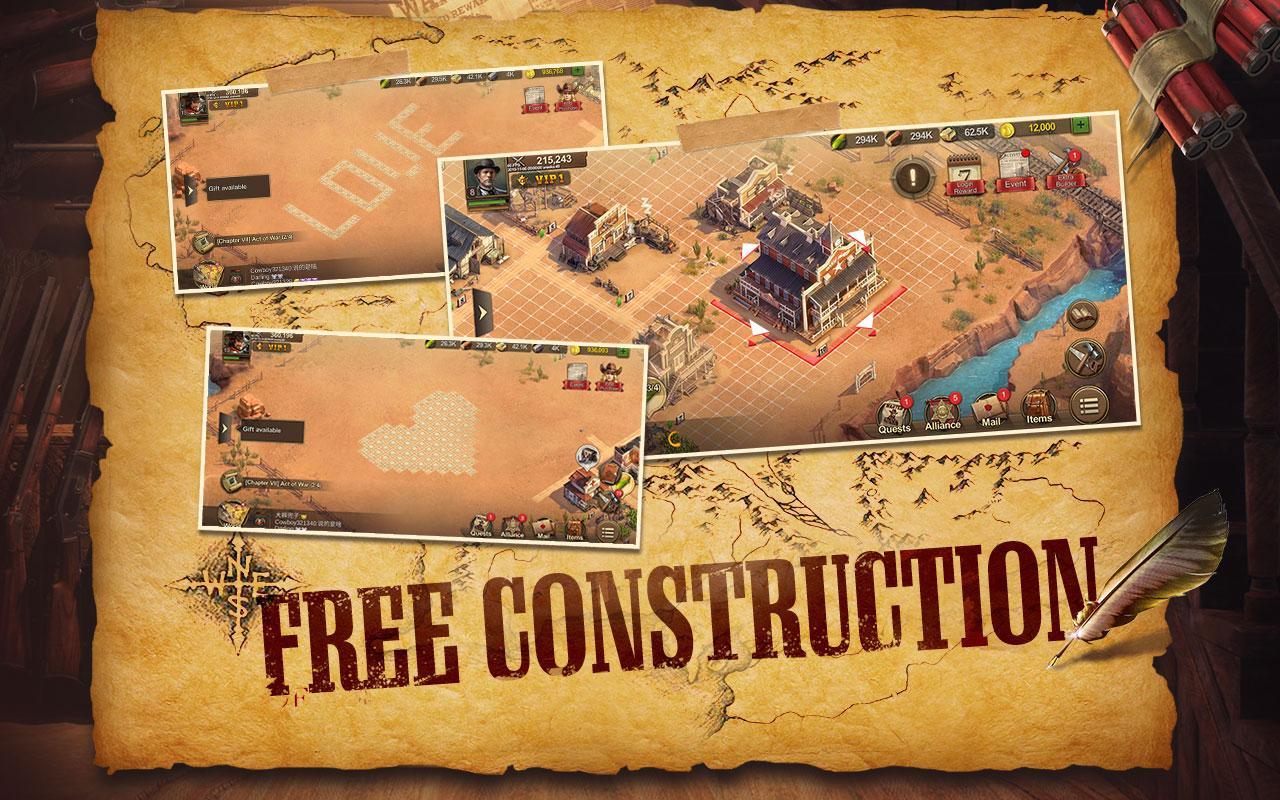 Wild Frontier - in the role of mayor of the newly created town in the West, you will lead a group of settlers to your town flourished and survived. But not all so simple... it s the Wild West! Here all negotiations are resolved with bullets and blades, and unexplored land filled with criminals, hands and cowboys. To help yourself, you can hire different heroes who will lead your army into battle in search of riches and glory. You can also create alliances with players from around the world, extracting more resources and to capture more territories.