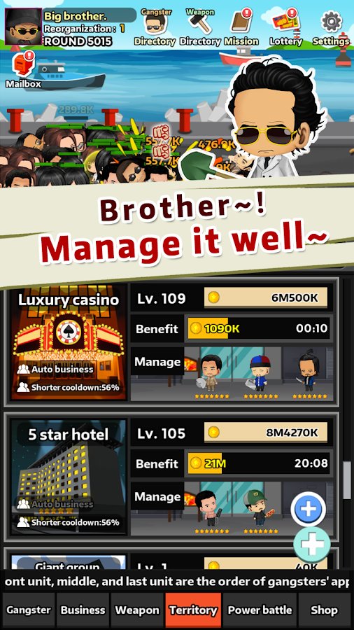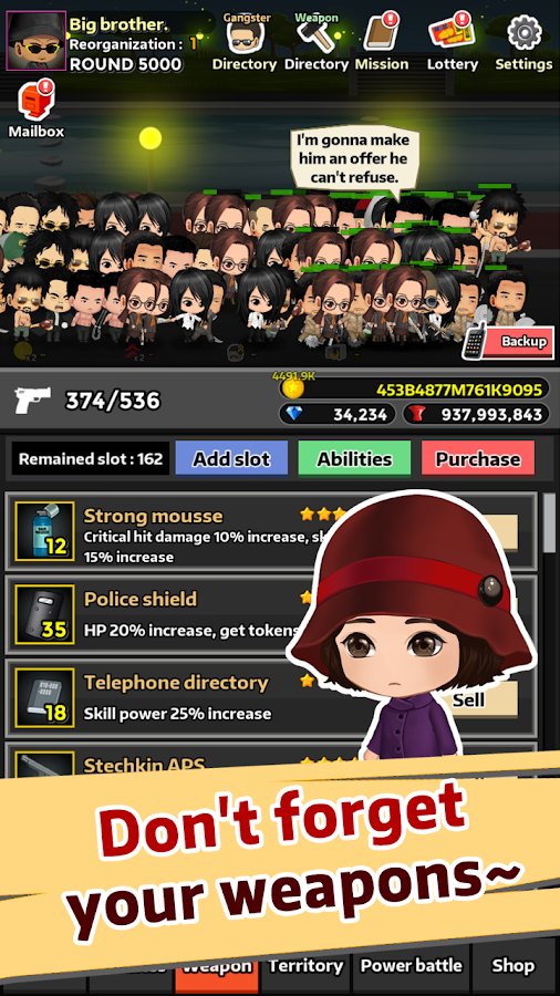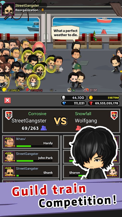 Idle Gangs VIP you have the opportunity to gather a unique team of real gangsters. The game combines an incredible combination of life of the underworld and the co-existence of magical creatures, dragons, knights, and even the titans. Participate in epic battles, control the characters by touching the screen and conquer the territory and reputation. Develop your gang, get the coins of various weapons and upgrade character abilities. The game is very non-standard. She will entice you with its dynamics and clear graphics.