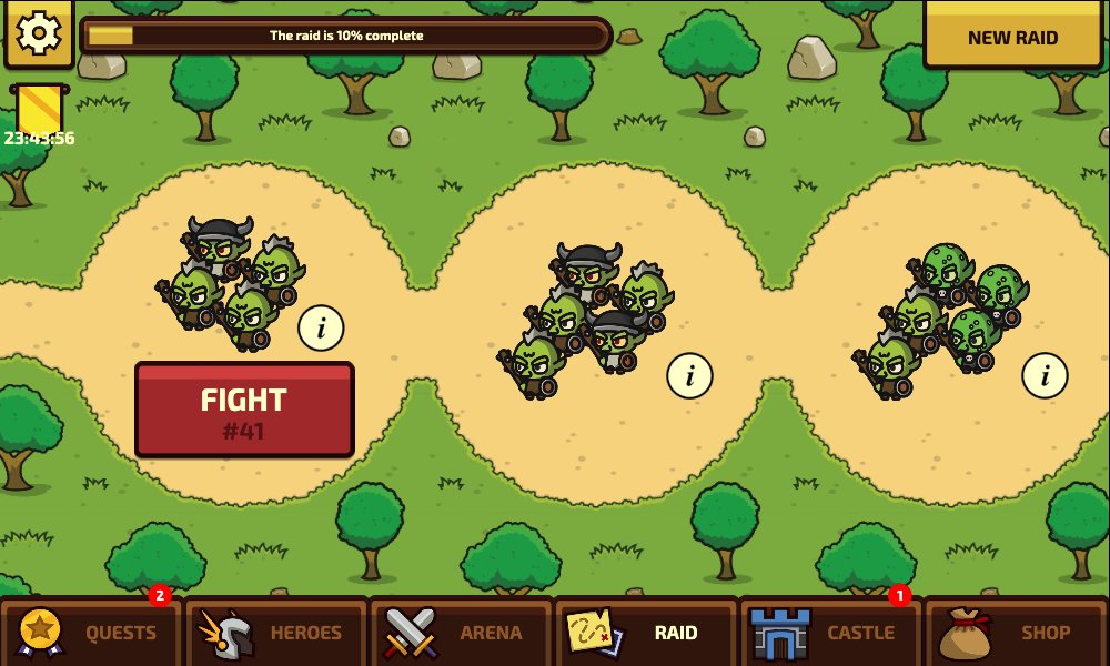 the RAID of Heroes: Total War – role-playing game on Android where you control a squad of soldiers and battle with the dark Lord. Your Kingdom is under threat and now you do not what no choice but to gather the troops and fight with orcs, goblins, warlocks and other evil spirits. Explore the many and varied locations where you will collect artifacts and other bonuses. Upgrade and improve your warrior and challenge other players taking part in PvP battles. Conquer new territories and attack other players castles. Unite in clans with their friends and attack enemies.