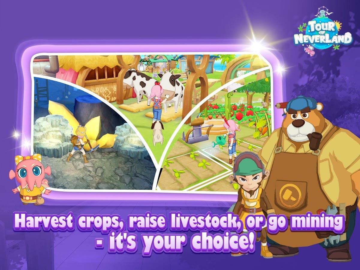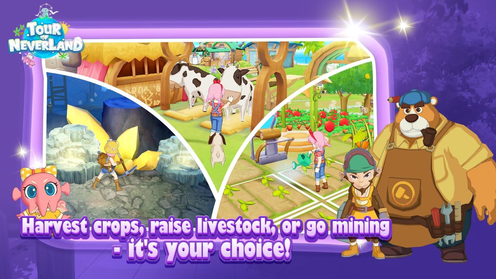 the Tour of Neverland - Manage your own farm on a tropical island, discover new land, plant crops, construct all kinds of agricultural facilities and decorate your house the way you want! Catch fish right from the ocean or do snorkeling to catch sea creatures. Build a dormitory in order to attract visitors and make new animal friends. You can even jump into a mine cart and explore the depths of mines in search of priceless treasures!