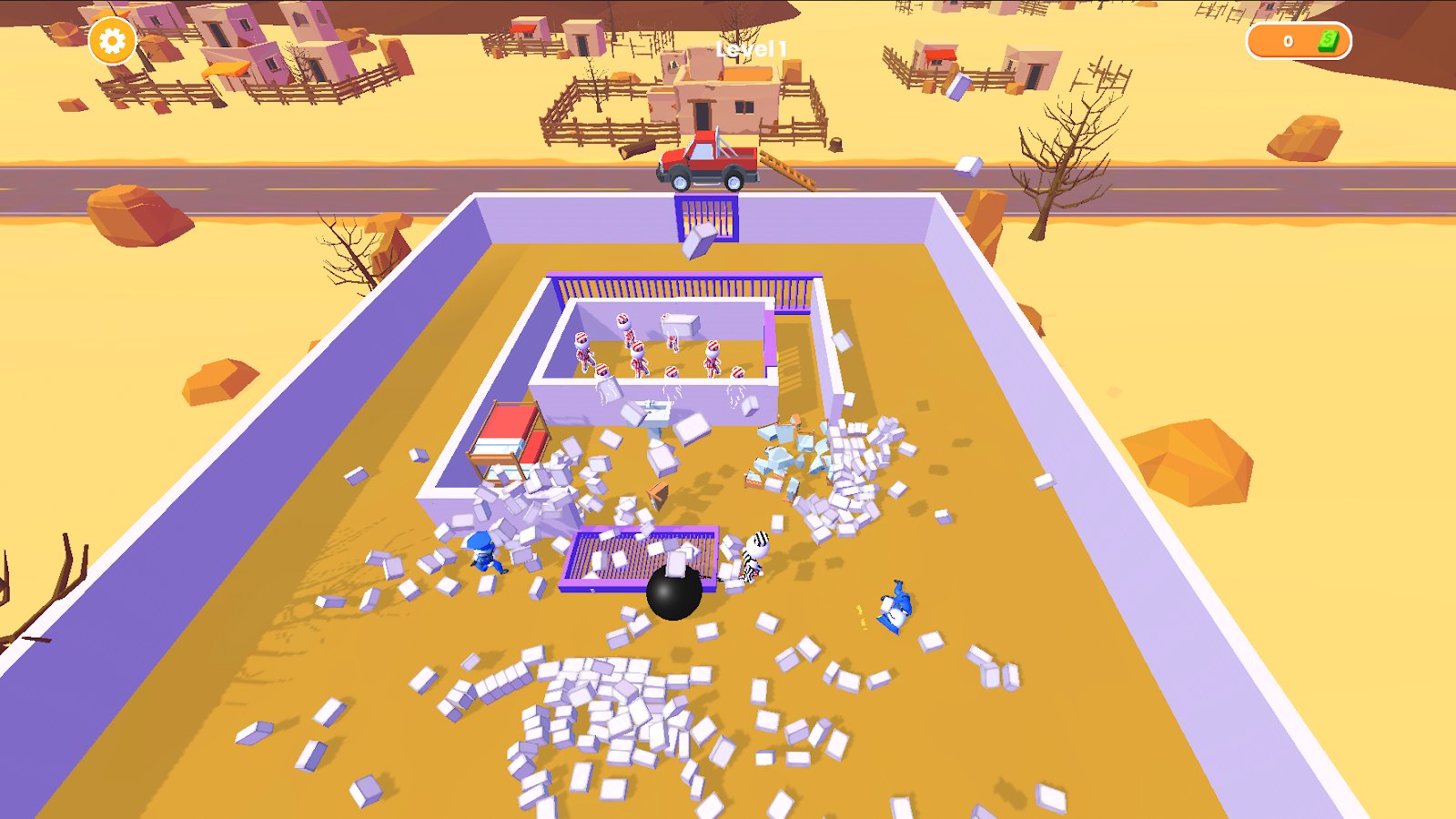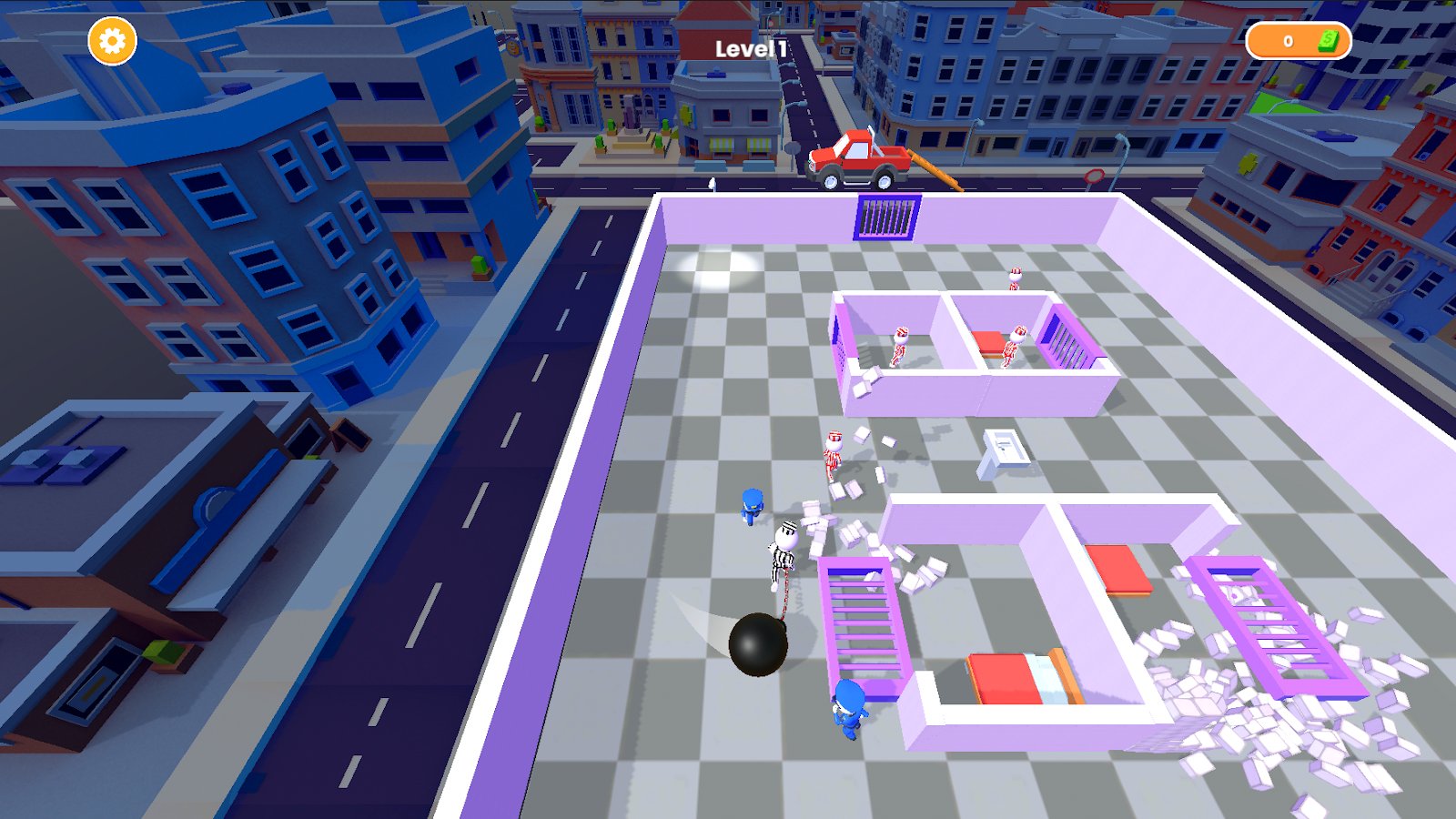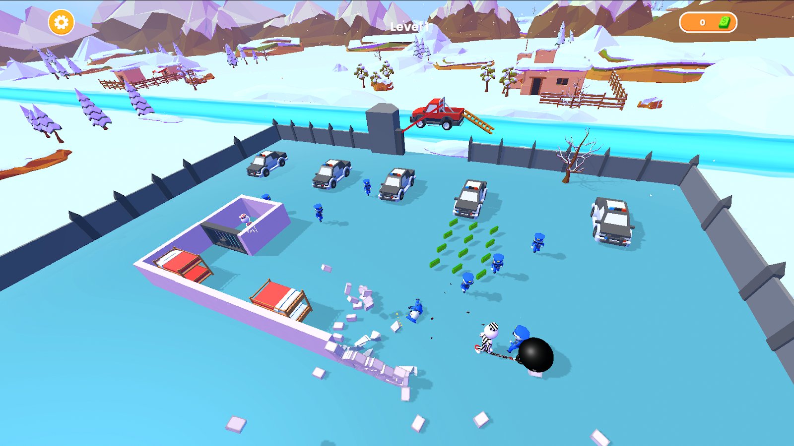 Ready to have some fun and go for the release of prisoners in interesting ways? Destroy the wall and run from the special forces, while your comrades arrange an escape. Use special abilities control a tornado, laser and heavy balls. Try not to get caught by the police when you travel around the prison. With each level will climb difficulty: harder to get to the place of destruction, increasing the number of observers, additional chain, many prisoners and other obstacles.