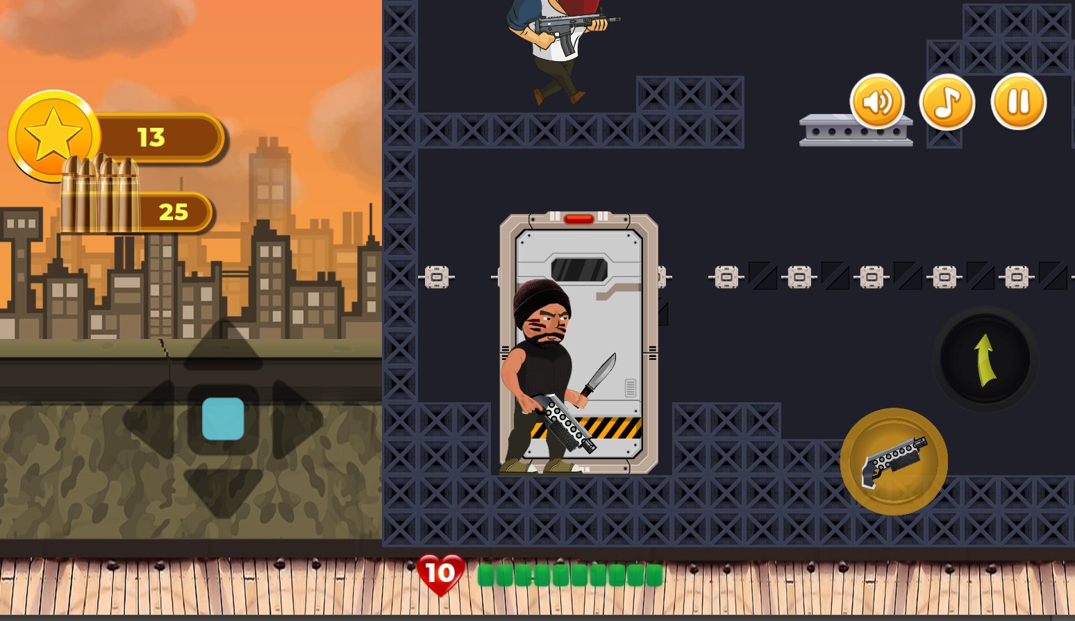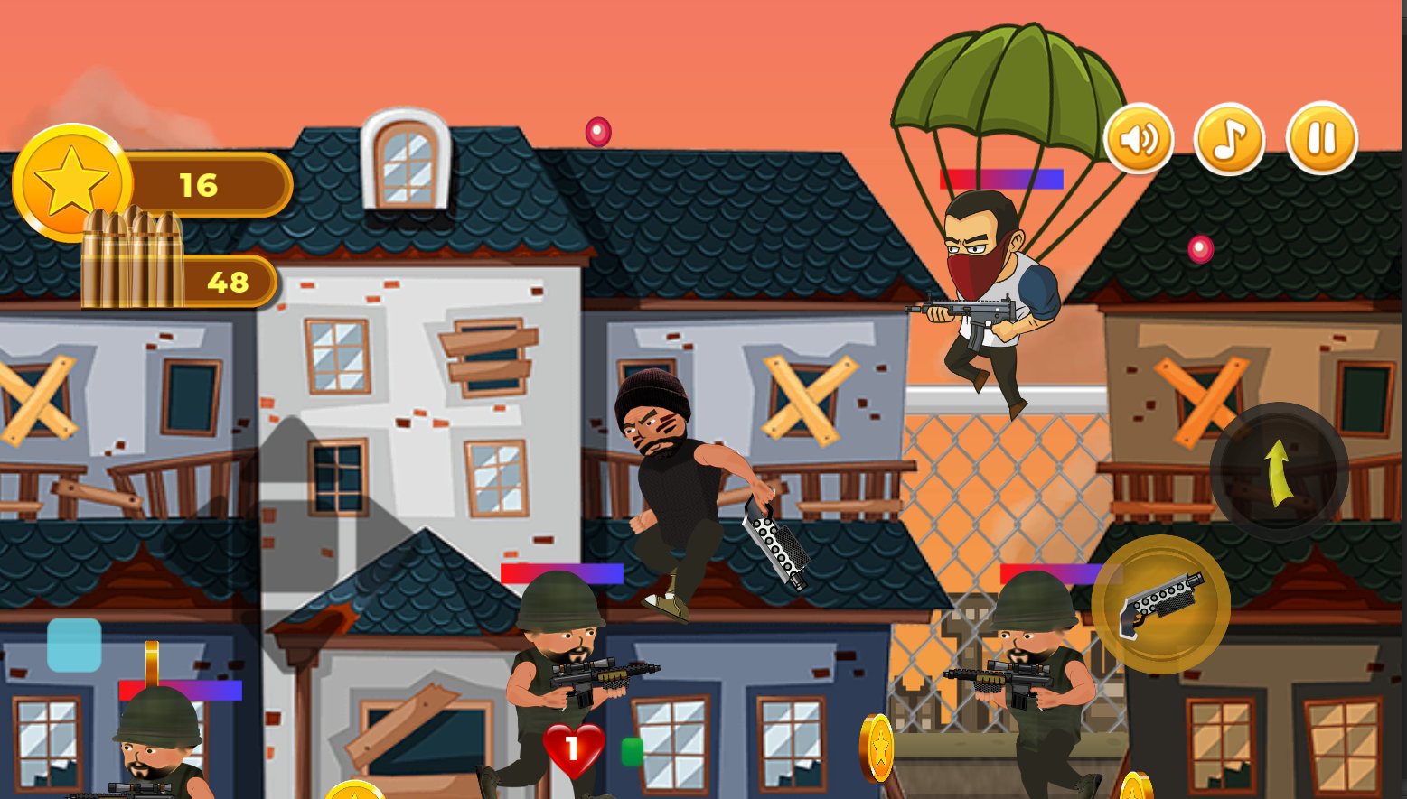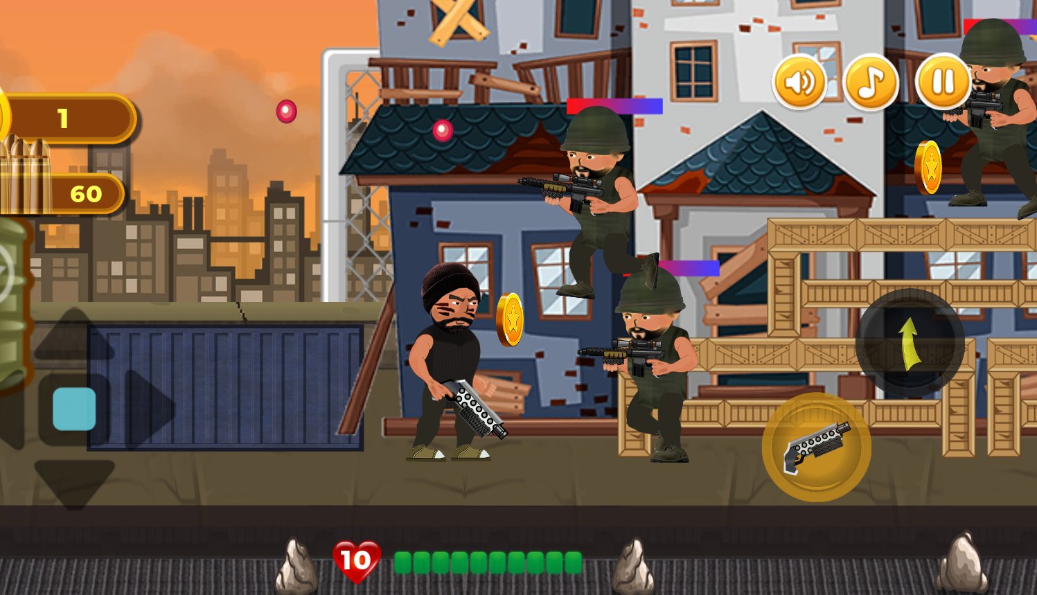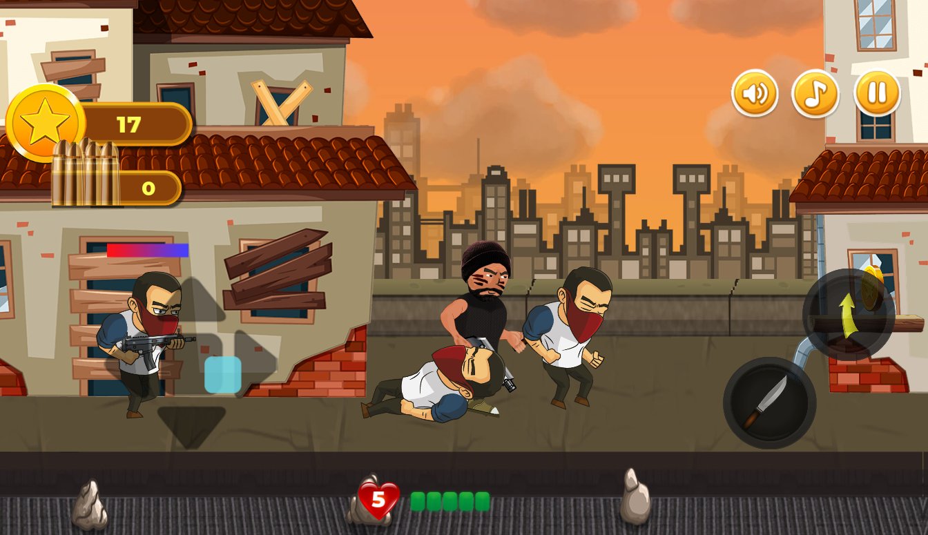 Revenge of Hero: 2D Platform Action Shooter Games - War has destroyed the wonderful territories in the cities that once were. Now chaos reigns everywhere: buildings are half ruined, there are no people on the streets, the sounds of guns and other weapons are loudly heard. Stand in the way of evil bandits, robots, and soldiers, don t let them pass. First, go through training, then regularly train, and later go out on the streets and fight, honing your skills. Don t forget about limited lives, a large number of attackers, and additional opportunities for victory.